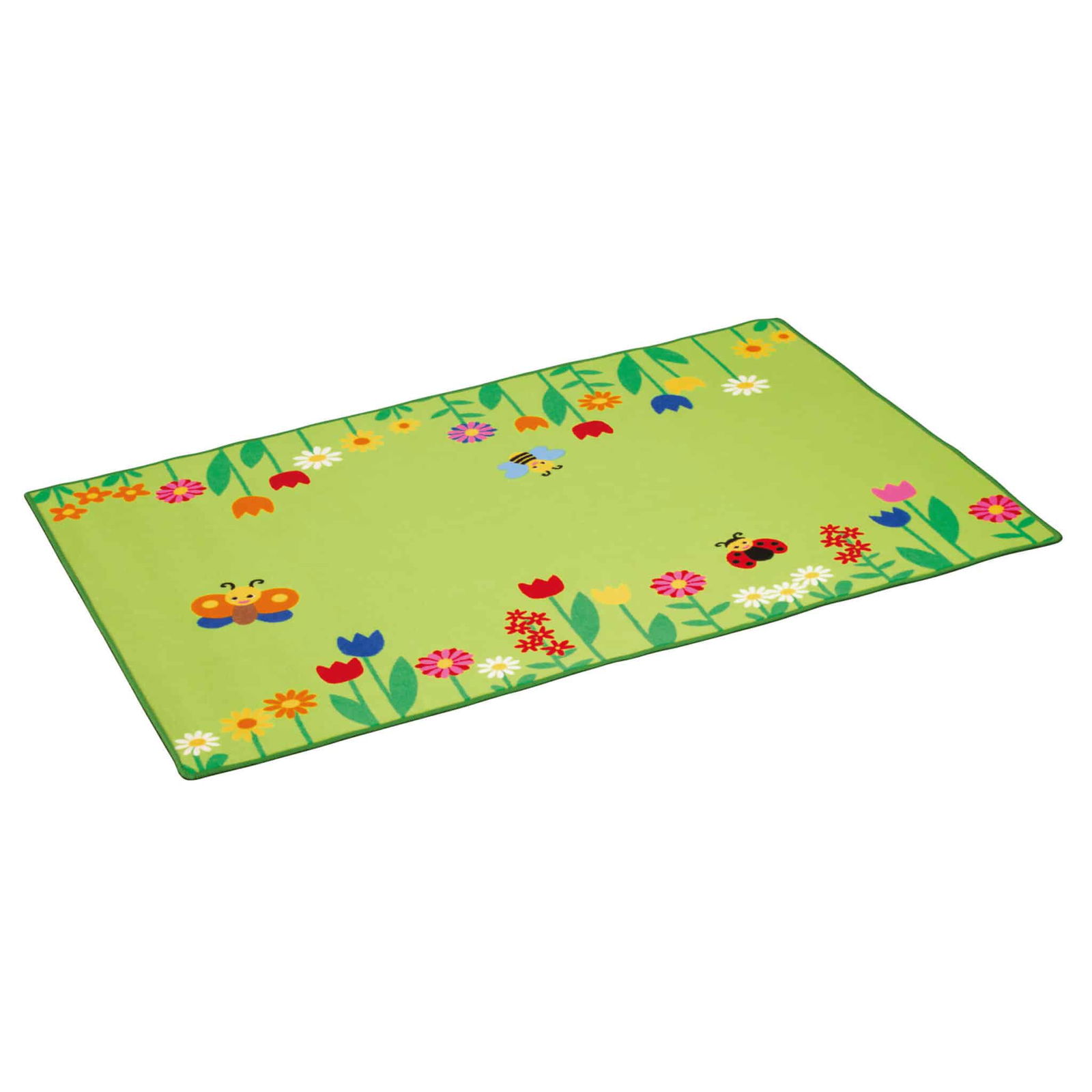 Wer liegt nicht gerne auf einer Blumenwiese. Der Teppich Blumenwiese mit verschiedenen Blütenformen und Tieren ist der ideale Untergrund für jede Spielecke und jedes Kinderzimmer. Unsere Teppiche entsprechen allen Normen für die Zulassung in öffentlichen Einrichtungen und sind natürlich schadstofffrei.