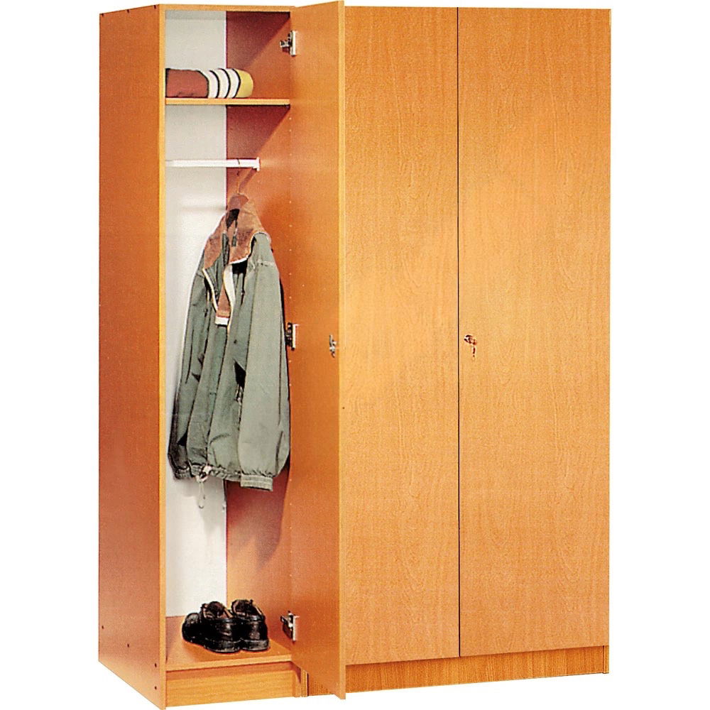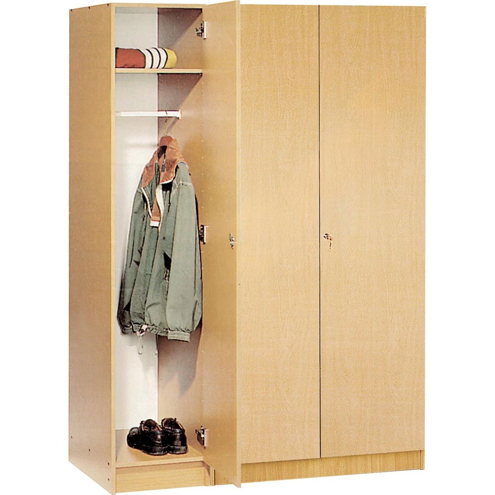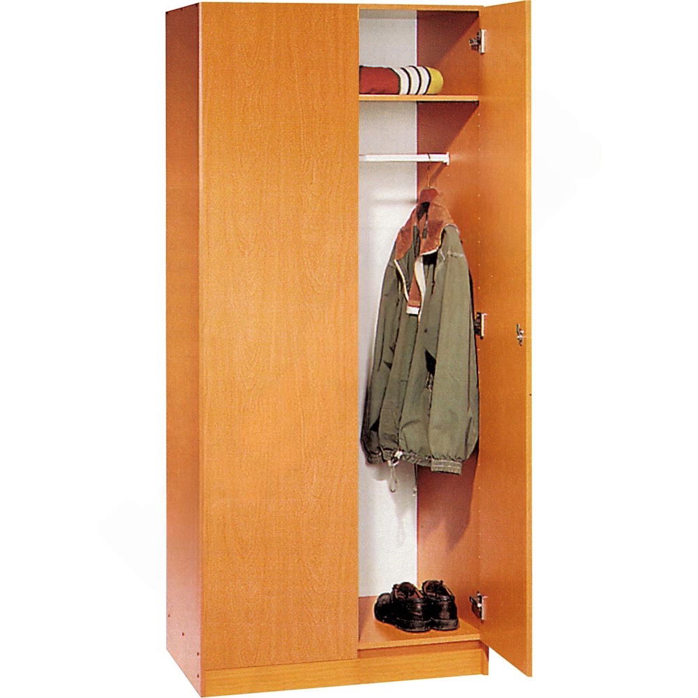 Im Gegensatz zu offenen Garderobenständern, die oft unruhig wirken, verbirgt dieser Kleiderschrank den Inhalt hinter seinen schlichten, abschließbaren Türen. Mit seiner großzügigen Tiefe von 53 cm bietet er ausreichend Platz, um auch voluminöse Winterjacken oder Sakkos bequem an der festen Kleiderstange aufzuhängen. Ein zusätzliches Fach im oberen Bereich bietet praktischen Stauraum für Kopfbedeckungen, Taschen oder Schals. Erhältlich in den zeitlosen Dekoren Ahorn und Buche, fügt er sich nahtlos in jede bestehende Büroeinrichtung ein und unterstreicht eine Atmosphäre von Professionalität und Ordnung.