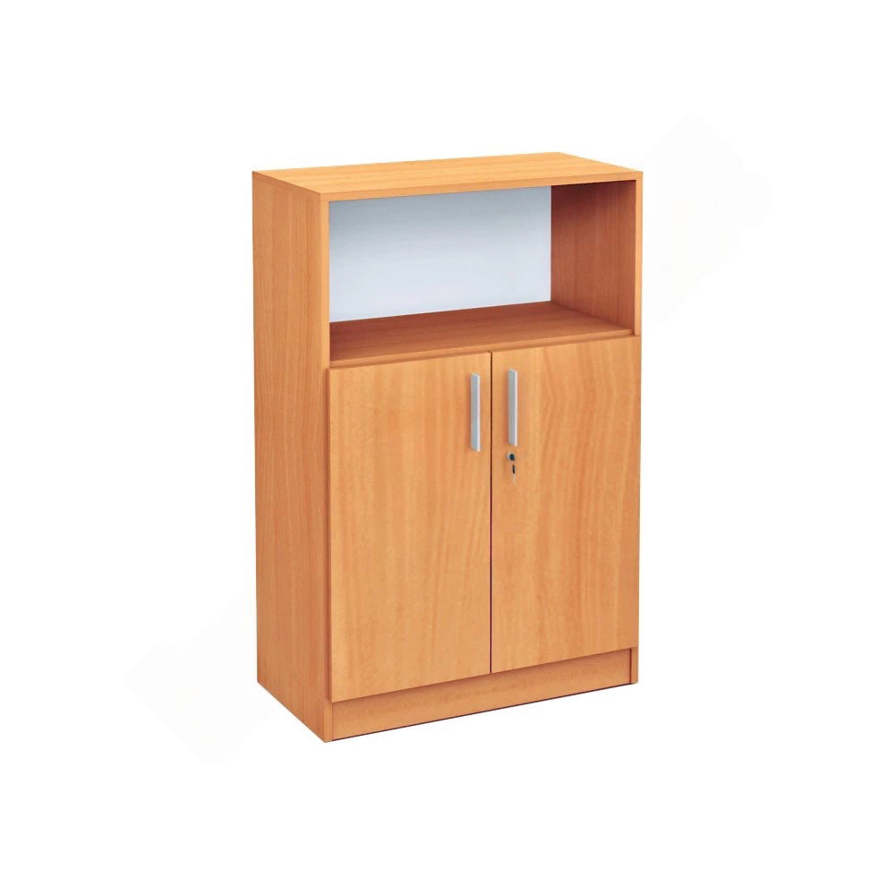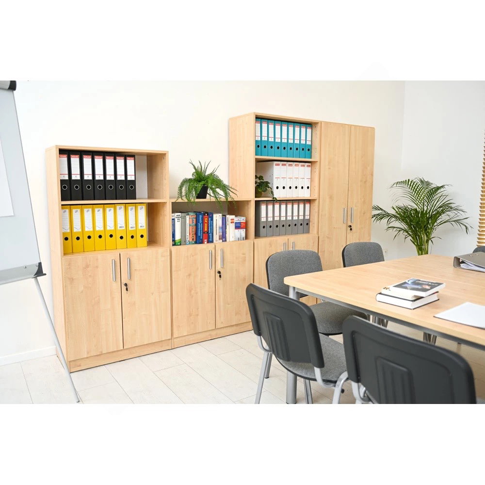 Dieses mittelhohe Möbelstück ist ein wahres Organisationstalent. Im oberen, offenen Fach finden häufig genutzte Ordner, Fachliteratur oder persönliche Gegenstände ihren Platz und sind sofort griffbereit. Dahinter, sicher verschlossen, bewahren Sie sensible Unterlagen oder privates Büromaterial auf. Verfügbar in den zeitlosen Dekoren Ahorn und Buche, fügt sich das Kombi-Regal nahtlos in jede Einrichtung ein und schafft eine Atmosphäre, die von Struktur und Professionalität geprägt ist.