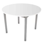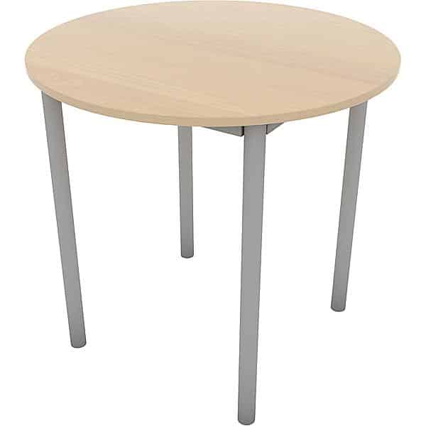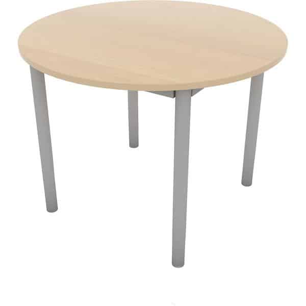 Der EXPO Konferenztisch hat ein stabiles, alufarbenes Metallgestell und höhenjustierbare Tischbeine, die leichte Bodenunebenheiten bis zu 25 mm ausgleichen können. Die Tischplatte aus 25 mm starker laminierter Spanplatte verfügt über 2 mm starke ABS-Kanten und ist in den ansprechenden Dekoren Weiß, Ahorn oder Buche erhältlich. Mit einem Durchmesser von 80 cm bietet dieser runde Konferenztisch eine angenehme und praktische Größe.