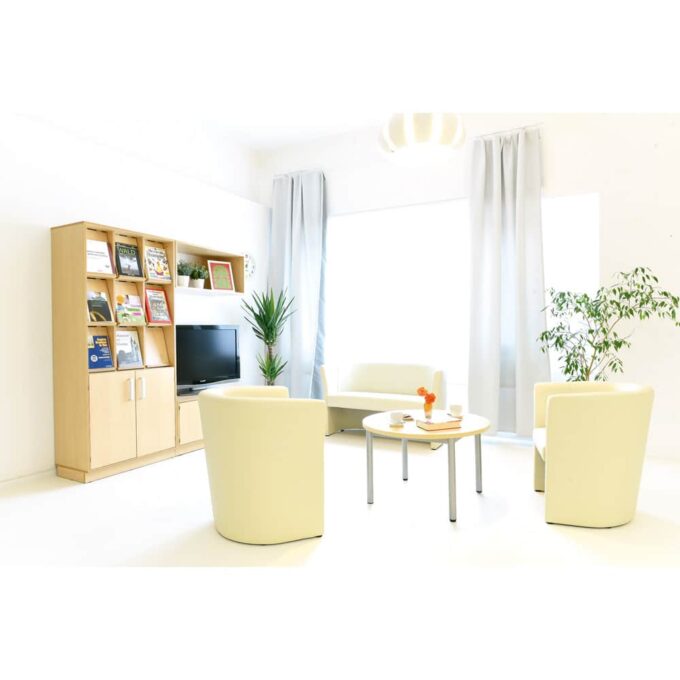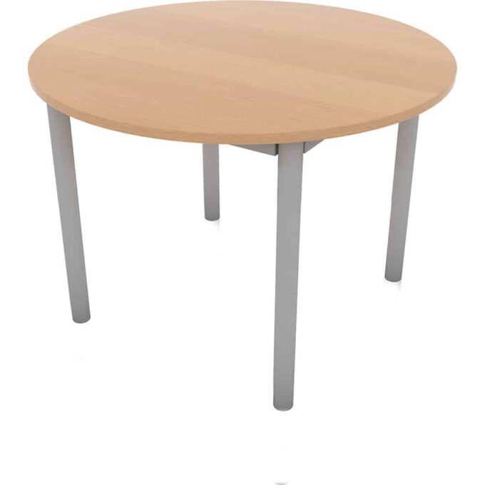 Der EXPO Konferenztisch hat ein stabiles, alufarbenes Metallgestell und höhenjustierbare Tischbeine, die leichte Bodenunebenheiten bis zu 25 mm ausgleichen können. Die Tischplatte aus 25 mm starker laminierter Spanplatte verfügt über 2 mm starke ABS-Kanten und ist in den ansprechenden Dekoren Weiß, Ahorn oder Buche erhältlich. Mit einem Durchmesser von 80 cm bietet dieser runde Konferenztisch eine angenehme und praktische Größe.