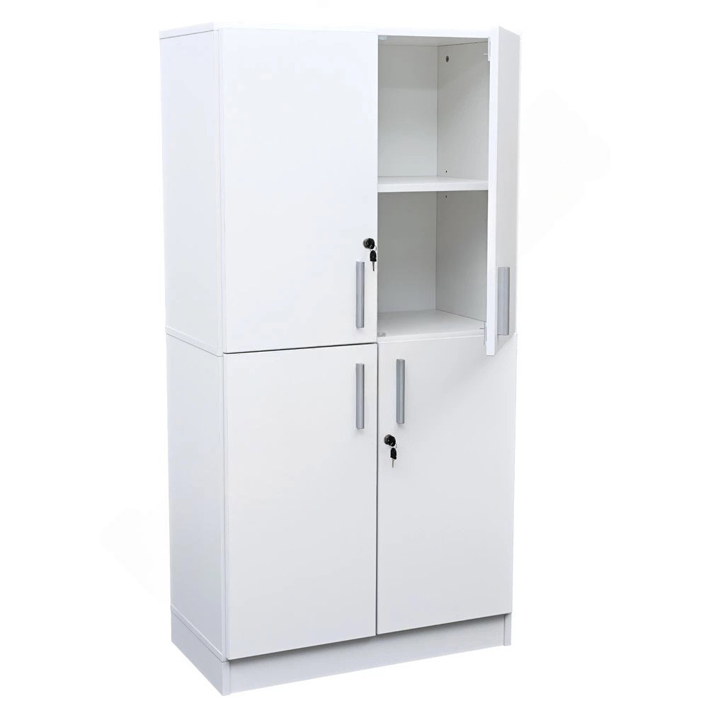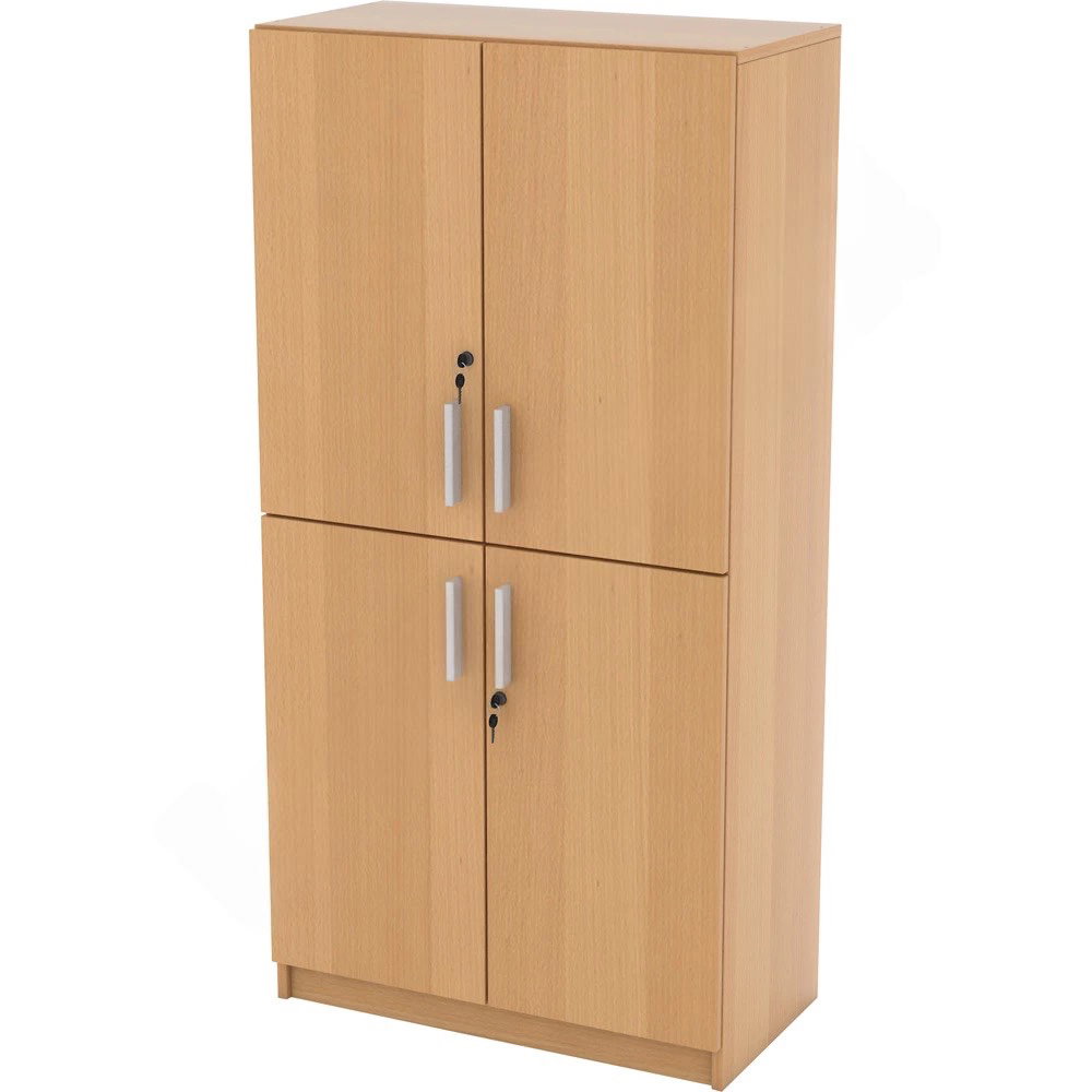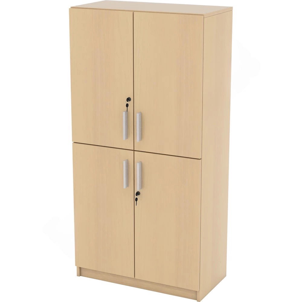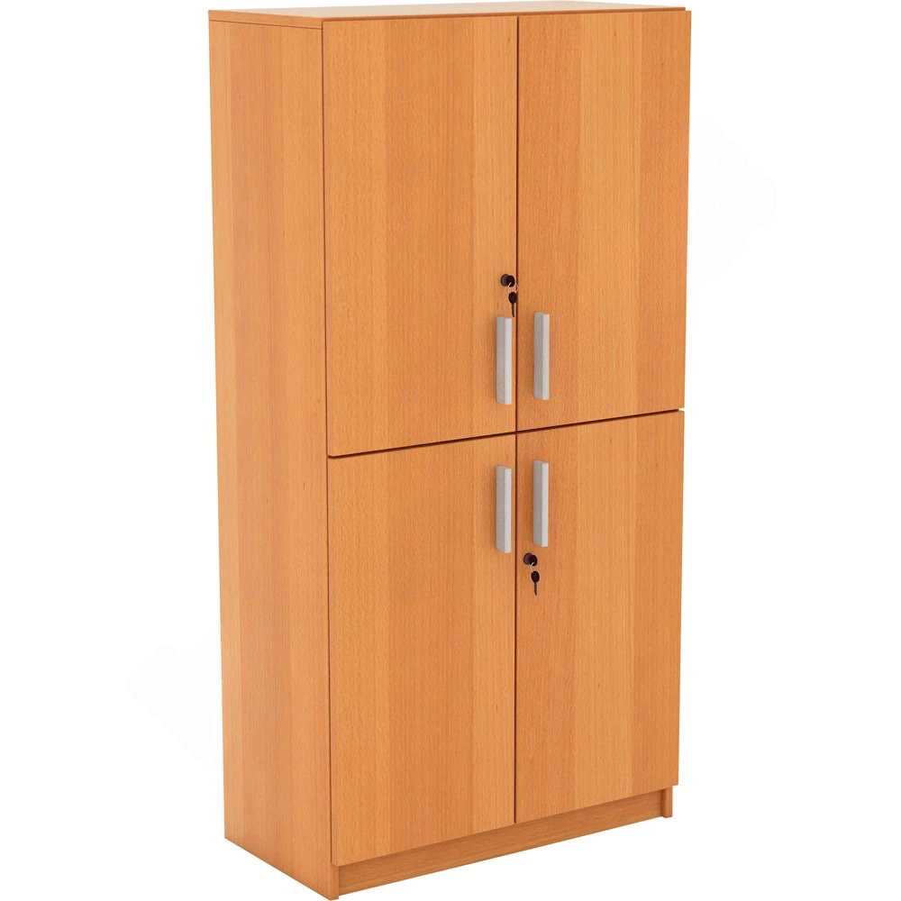 Das Besondere an diesem Modell ist seine Vierteilung: Zwei separate, abschließbare Türpaare ermöglichen es, den oberen und unteren Bereich des Schranks unabhängig voneinander zu nutzen. So können Sie beispielsweise im unteren Teil das allgemeine Archiv lagern, während im oberen Bereich nur bestimmte Mitarbeiter Zugriff auf vertrauliche Dokumente haben. Verfügbar in den Dekoren Ahorn, Buche und modernem Weiß, fügt sich der Schrank harmonisch in jedes professionelle Ambiente ein und sorgt für eine makellose, strukturierte Optik.