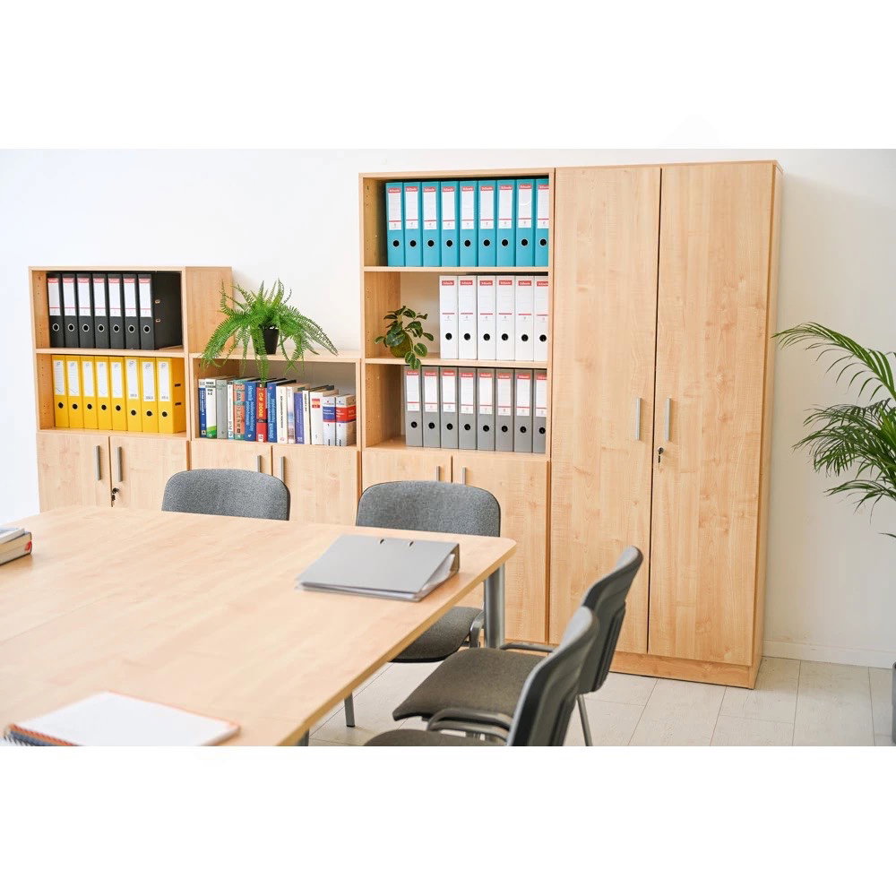 Hoher EXPO Aktenschrank (185 cm) in Weiß, Ahorn oder Buche. Abschließbar, 2 Türen, Platz für 5 Ordnerhöhen. Mit verstellbaren Böden für flexible Ordnung.