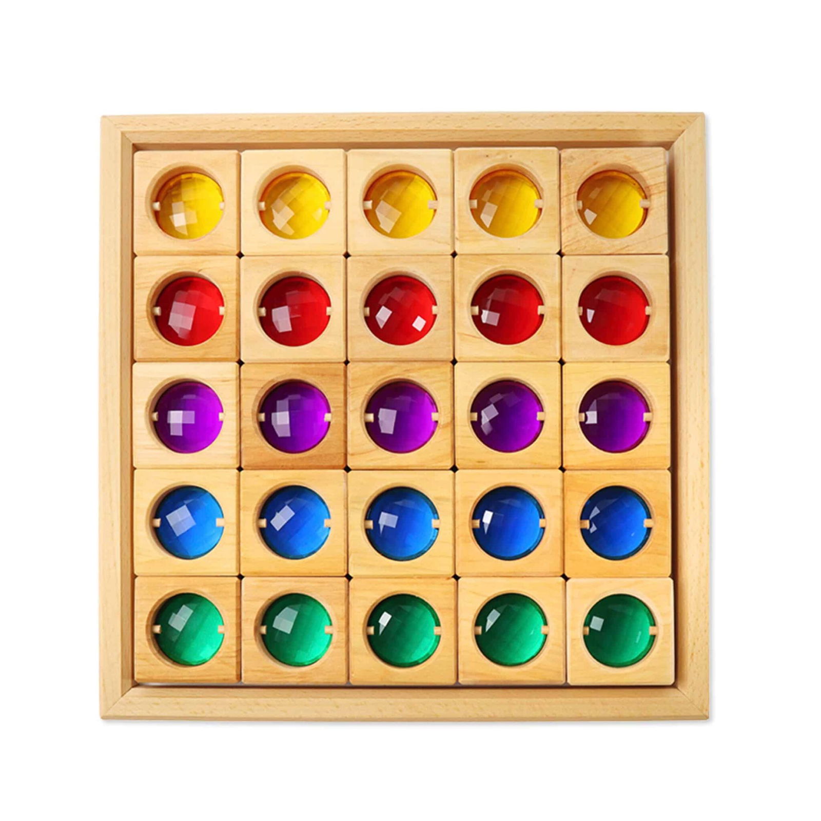 Der Facettenbaukasten enthält 5 verschiedene Farben mit jeweils 5 Quadraten, die hervorragend kombiniert werden können. Jedes Bauteil hat die Maße 5 x 5 x 2,5 cm, was sie ideal für kleine Hände macht. Wenn die Kinder mit den Bausteinen arbeiten, können sie herrliche, durchscheinende Fenster bauen, die die Fantasie anregen.