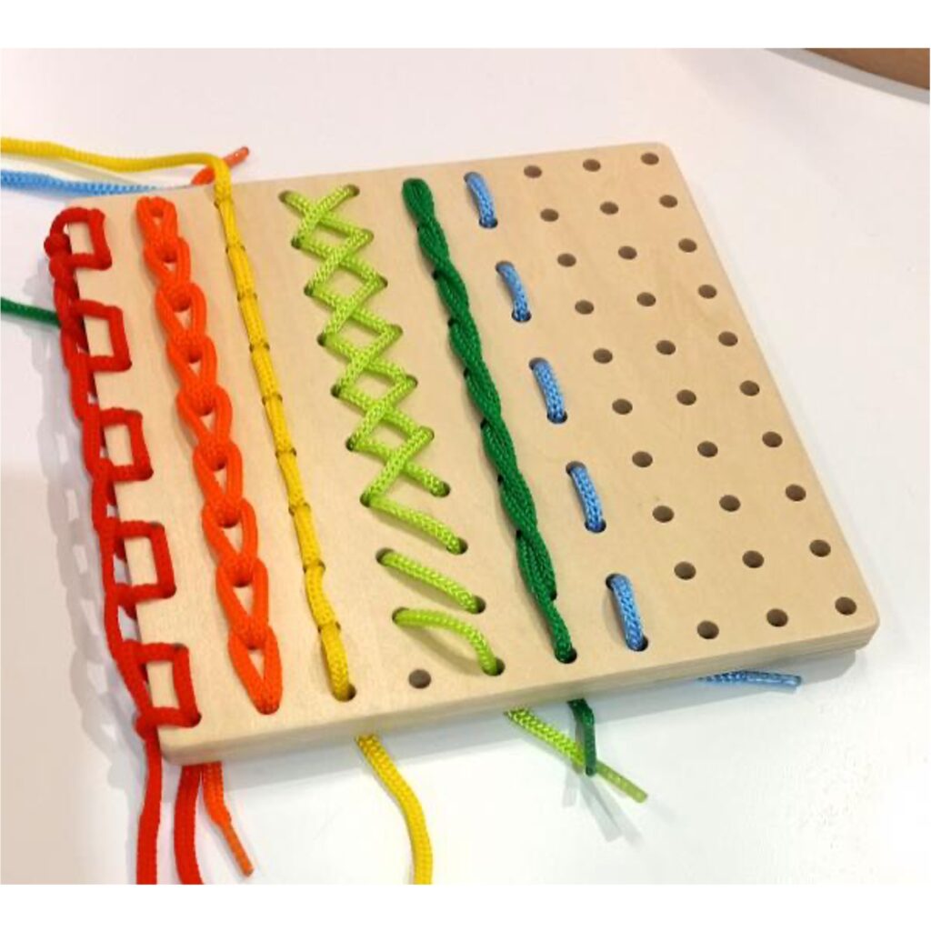 - Trainieren von Geduld und Fokus: Das Arbeiten am Fädelbrett fordert die Konzentration und fördert die Fähigkeit, Aufgaben strukturiert anzugehen.