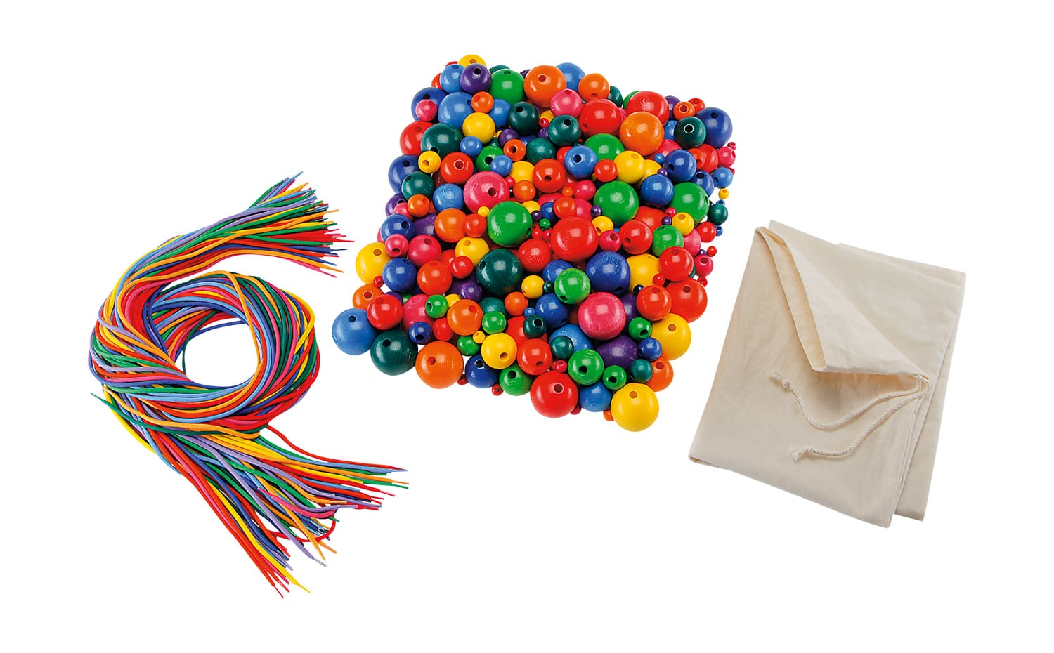 - Leuchtende Regenbogenfarben: Die Perlsenkel und Holzperlen sind farblich aufeinander abgestimmt und regen durch kräftige Farben wie Rot, Blau, Gelb und Grün die Fantasie der Kinder an.