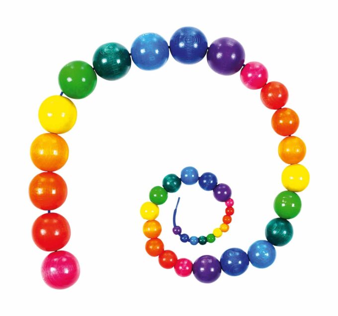- Leuchtende Regenbogenfarben: Die Perlsenkel und Holzperlen sind farblich aufeinander abgestimmt und regen durch kräftige Farben wie Rot, Blau, Gelb und Grün die Fantasie der Kinder an.