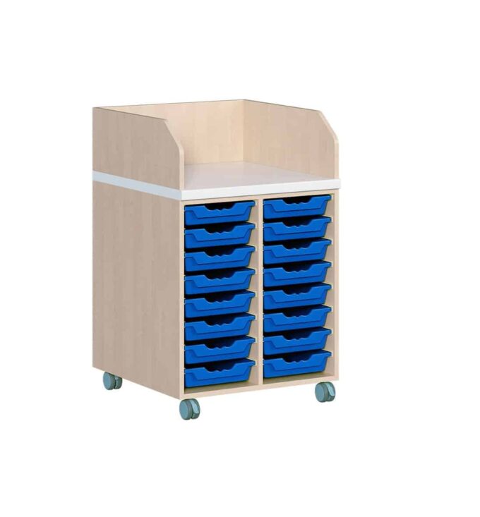 Fahrbare Wickelkommode mit 16 flachen ErgoTray Boxen für Kindergarten & Krippen
