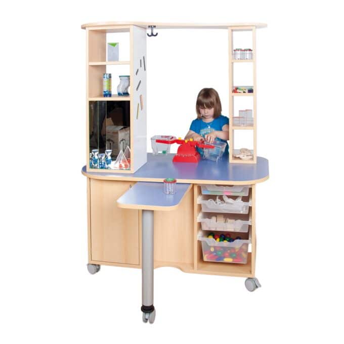 - Produkttyp: Fahrbarer Experimentierplatz mit Stauraum