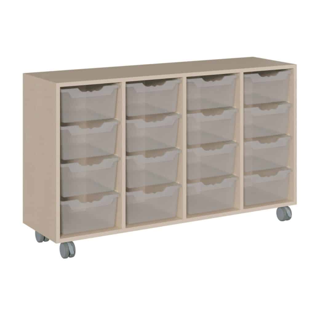 - Maximale Kapazität: Mit 16 hohen ErgoTray-Boxen bietet dieses Regal ein außergewöhnlich großes Stauvolumen. Es ist die ideale Lösung für Gruppen mit einem hohen Materialbedarf und perfekt für die Aufbewahrung von großen Bausteinen, Fahrzeugen, Puppen, Kostümen und vielem mehr.