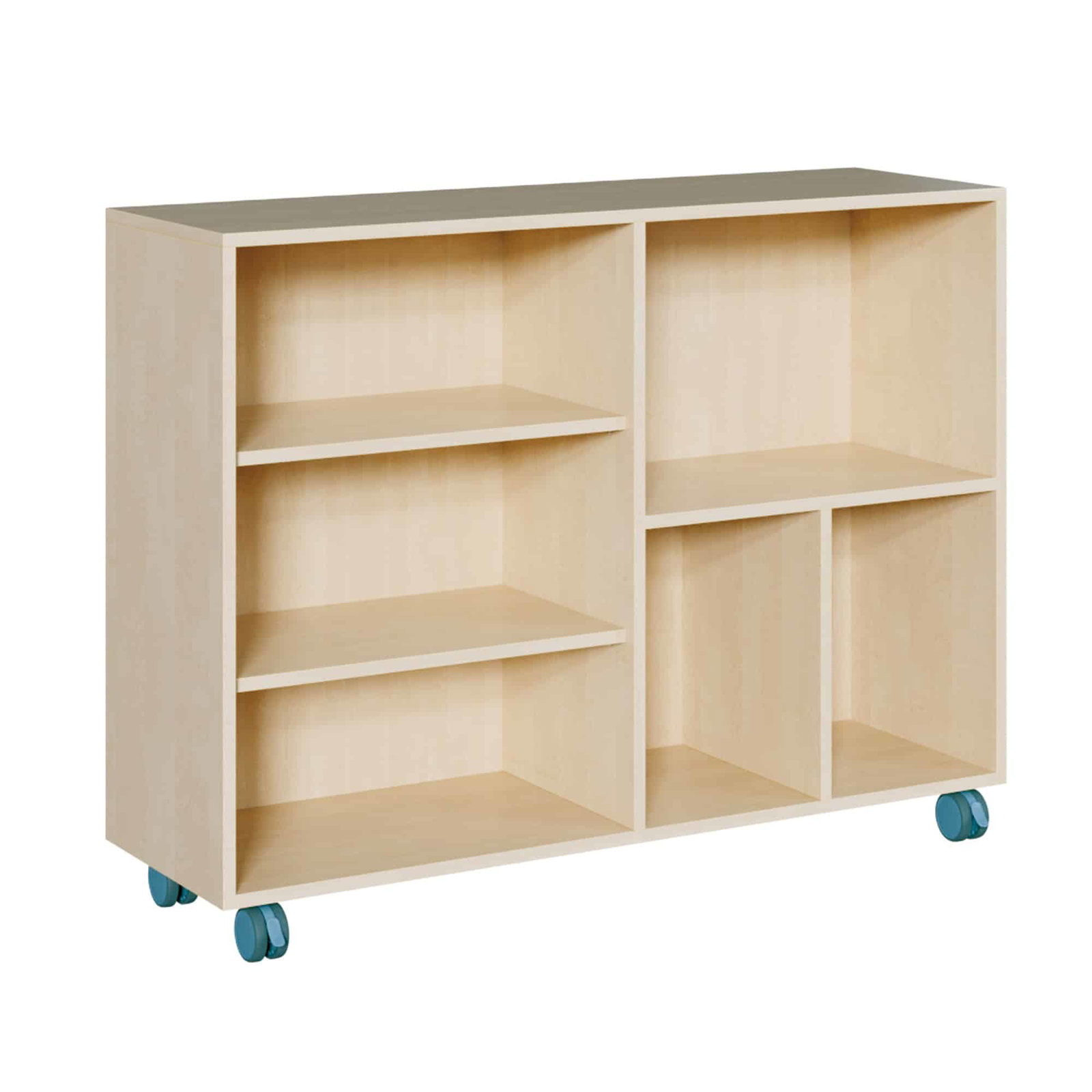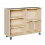 - Perfekt für thematische Inseln: Nutzen Sie die verschiedenen Fächer, um Materialien thematisch zu gruppieren. So entstehen kleine, einladende Lerninseln für die Bauecke, den Kreativbereich oder die Leseecke, die von beiden Seiten zugänglich sind.