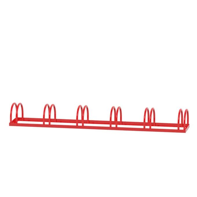 Der Fahrradständer 6er, Standard bietet Platz für bis zu sechs Fahrräder und ist ideal für Bildungseinrichtungen mit hohem Verkehrsaufkommen. Dank seiner kompakten Abmessungen und stabilen Bauweise ist er eine effiziente und langlebige Lösung.