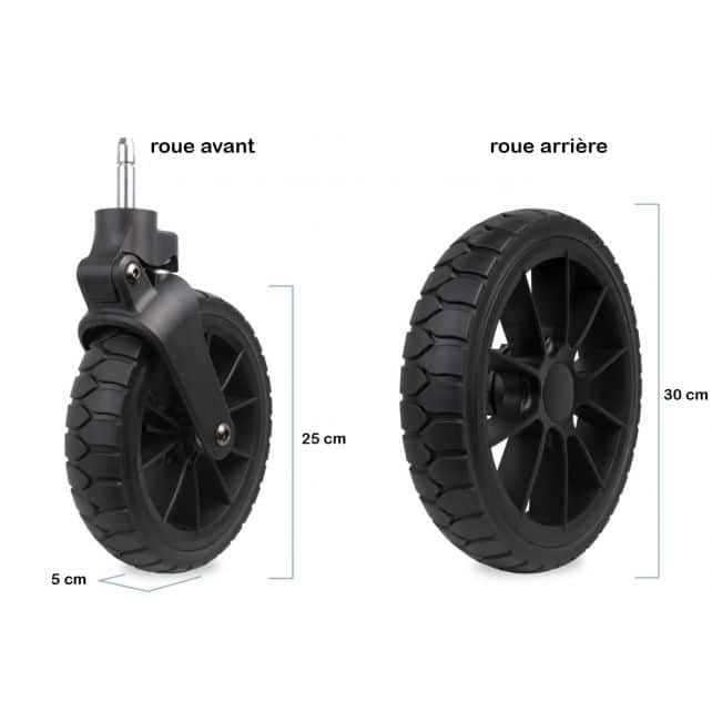- Vorderräder: Höhe 25 cm, Dicke 5 cm