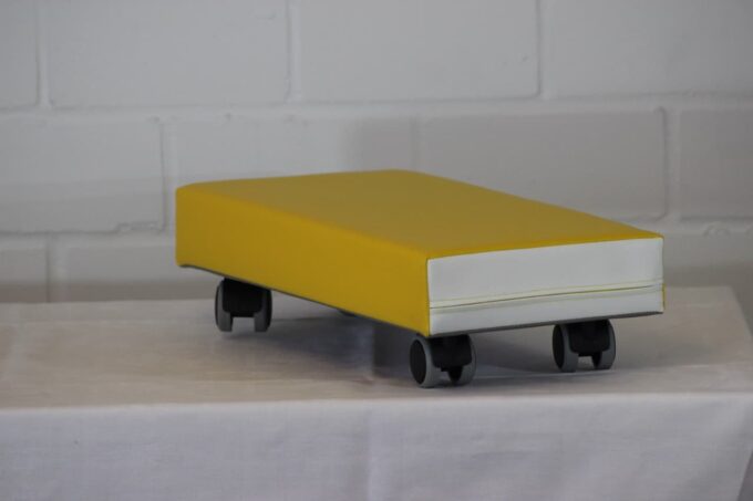 - PAPA ROLLO: 75 x 50 x H 20 cm – das größte Rollbrett, ideal zum Sitzen oder Liegen.