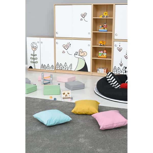 Verleihen Sie Ihren Gruppenräumen eine liebevolle Atmosphäre mit dem bezaubernden Fantasiewelt Aufsatzschrank mit Herzen. Diese liebevoll gestaltete Möbelkollektion schafft eine fröhliche und inspirierende Umgebung und bietet gleichzeitig viel Stauraum für Lern- und Spielmaterialien.