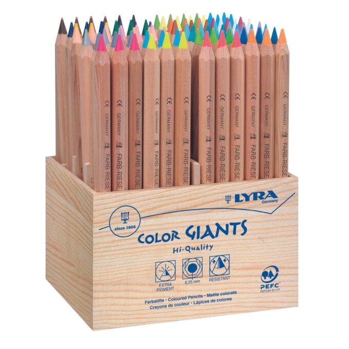 Die Farb-Riesen Natur bestechen durch ihre besonders intensiven Farbtöne und eine 6,3 mm starke Mine, die für eine großartige Farbabgabe sorgt. Diese robusten Minen halten mehr Druck stand, wodurch Kinder ihre Vorstellungen mit knalligen, lebhaften Farben umsetzen können. Ob beim Zeichnen, Malen oder Basteln – die Farb-Riesen sind perfekt für alle kreativen Projekte, von Kunstunterricht bis hin zu privaten Bastelstunden.