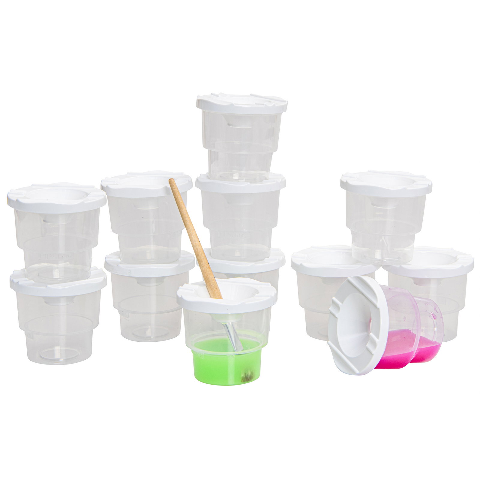 Am Ende einer Maleinheit ist oft noch Farbe übrig. Dank der passgenauen Deckel muss diese nicht entsorgt werden. Die Farbe kann einfach im Becher aufbewahrt, luftdicht verschlossen und für den nächsten Tag frisch gehalten werden. Das spart nicht nur Material und Kosten, sondern auch wertvolle Vorbereitungszeit. - Großzügiges Volumen für langes Malvergnügen