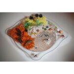 - Maße: Ø 56 cm, Höhe 5 cm, Vertiefung: Ø 45 cm