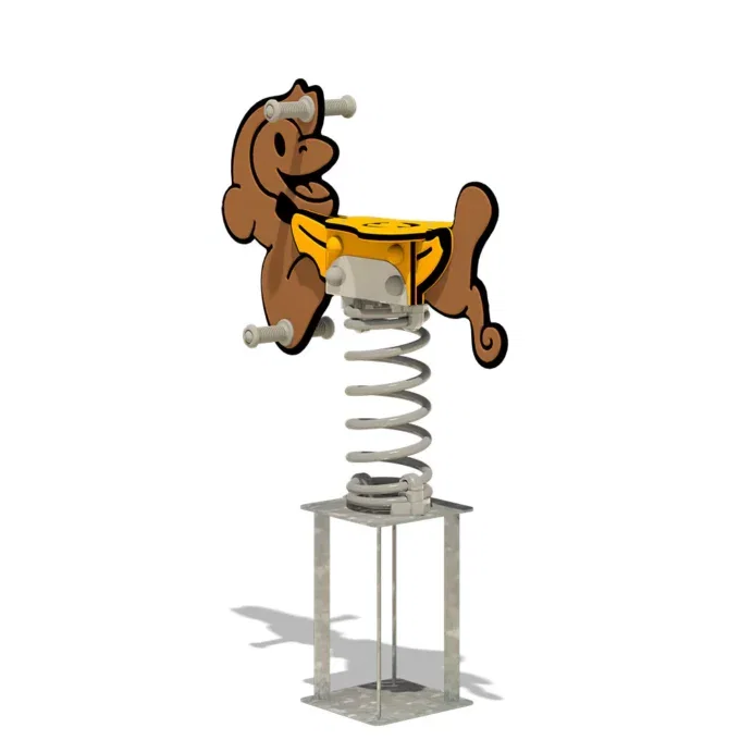 Zusätzlich sorgen die verstärkten Kunststoffhandgriffe und Fußstützen mit Anti-Rutsch-Profil dafür, dass die kleinen Abenteurer stets sicheren Halt haben. Die Feder aus pulverbeschichtetem Stahl garantiert ein sanftes und kontrolliertes Wippen, während die feuerverzinkte Stahlverankerung eine stabile Montage ermöglicht, die durch Einbetonieren oder Verschrauben erfolgen kann. So bleibt „Chimpey“ auch bei intensiven Spielstunden stabil und sicher!