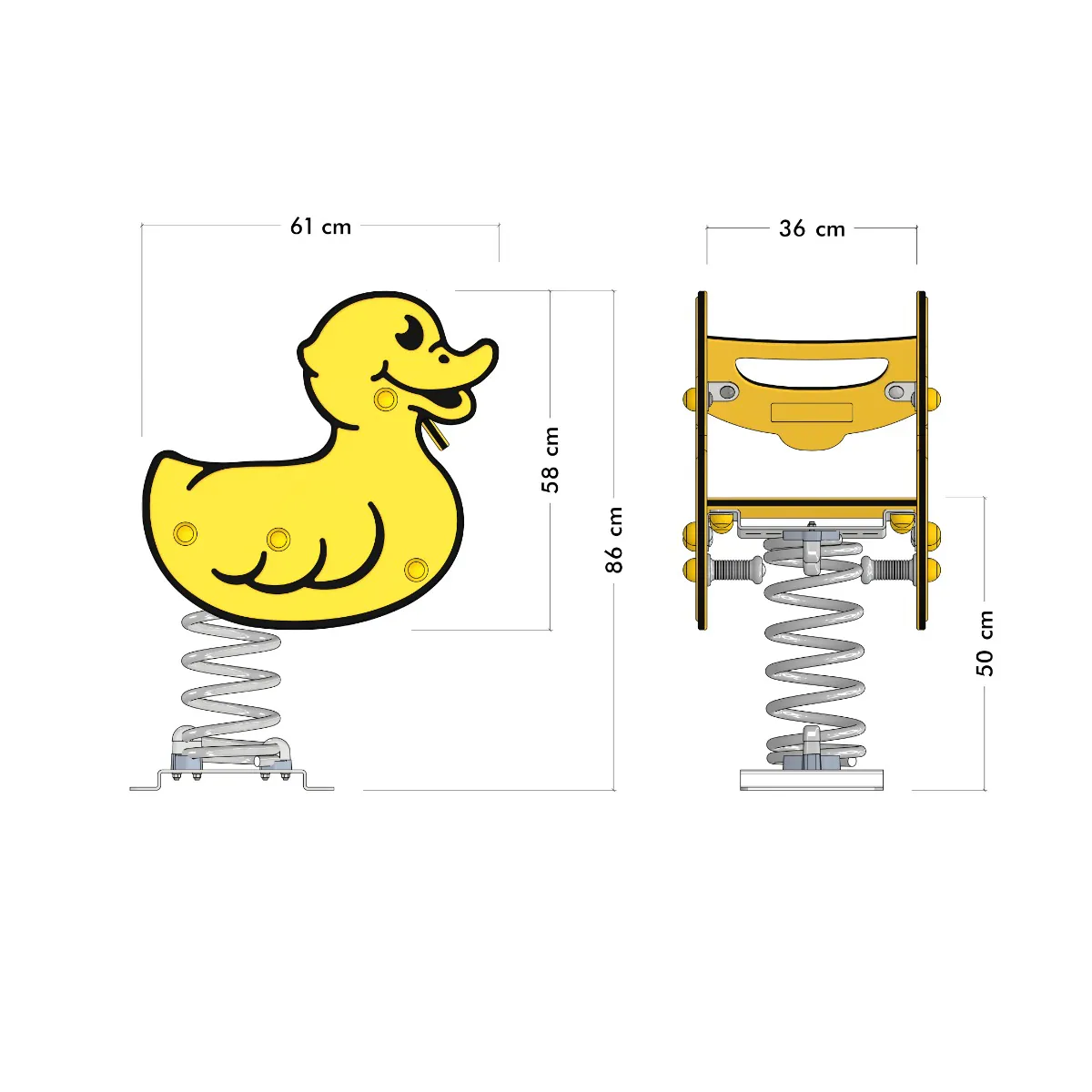 Die verstärkten Kunststoffhandgriffe und Fußstützen mit Anti-Rutsch-Profil sorgen dafür, dass die kleinen Abenteurer jederzeit einen sicheren Halt haben. Die Feder aus pulverbeschichtetem Stahl garantiert ein sanftes Wippen und wird mit einer feuerverzinkten Stahlverankerung geliefert, die eine einfache Installation durch Einbetonieren oder Verschrauben ermöglicht. So bleibt „Plungey“ stabil und sicher, selbst bei lebhaften Spielstunden!