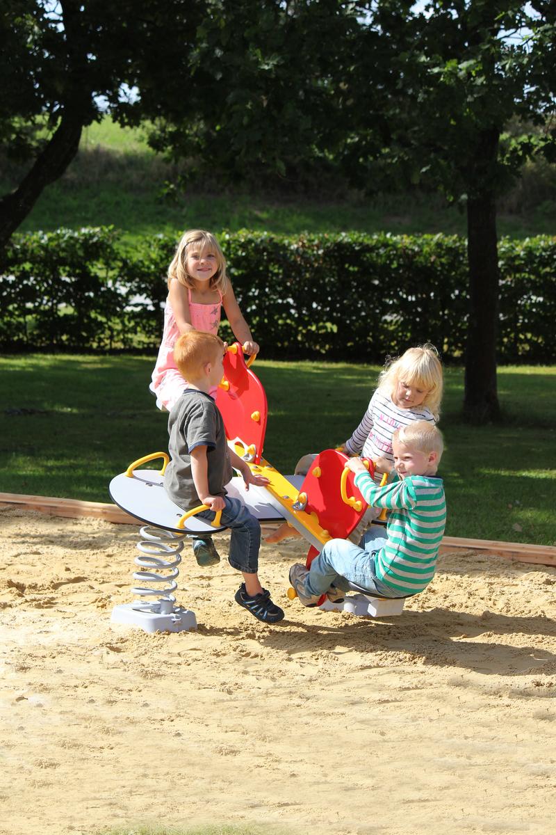 Vier Blütenblätter – eins pro Kind. Ein großer Spielspass für 4 Kinder auf der tollen Federwippe von LEDON.