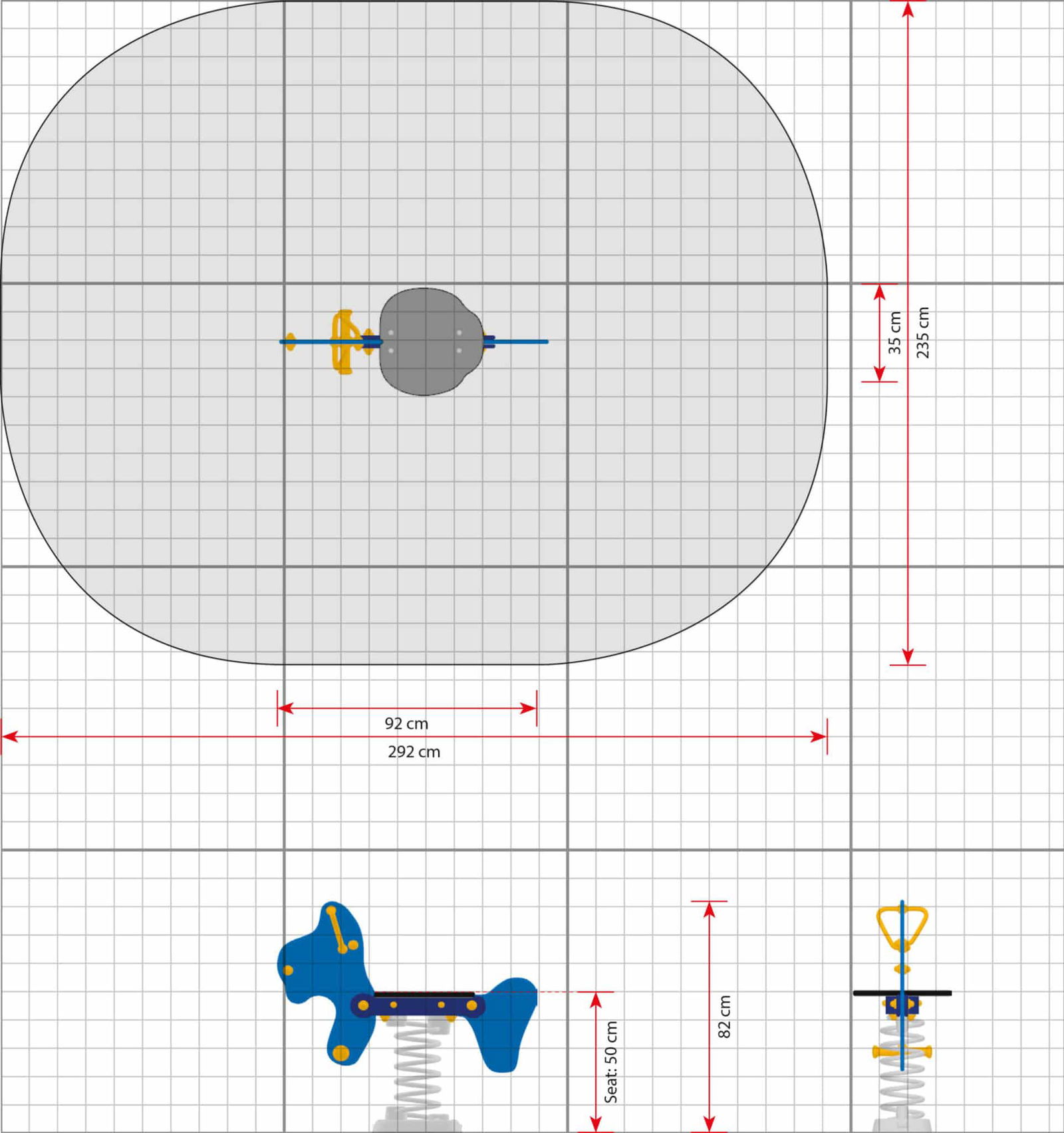 - Platzbedarf inkl. Sicherheitsabstände (LxB): 292 x 235 cm