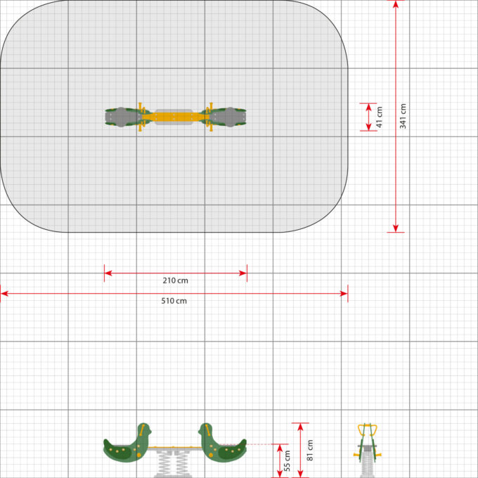 - Platzbedarf inkl. Sicherheitsabstände (LxB): 341 x 510 cm