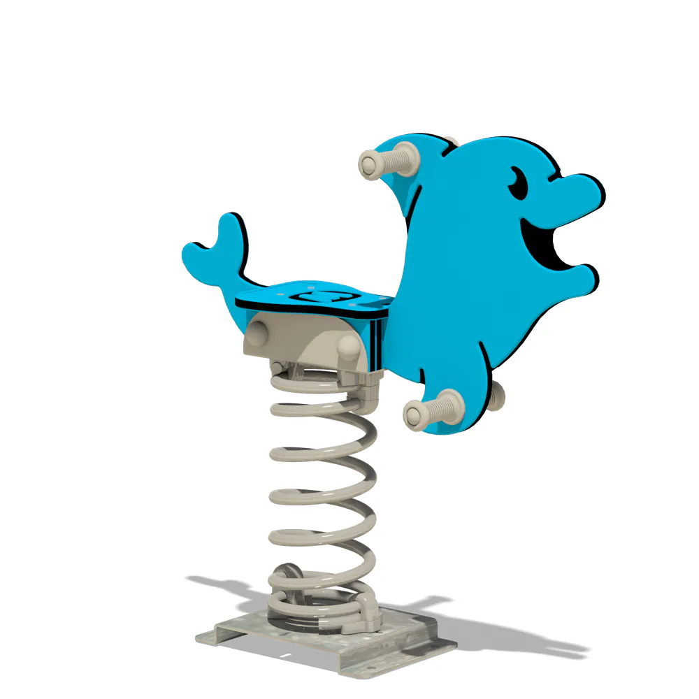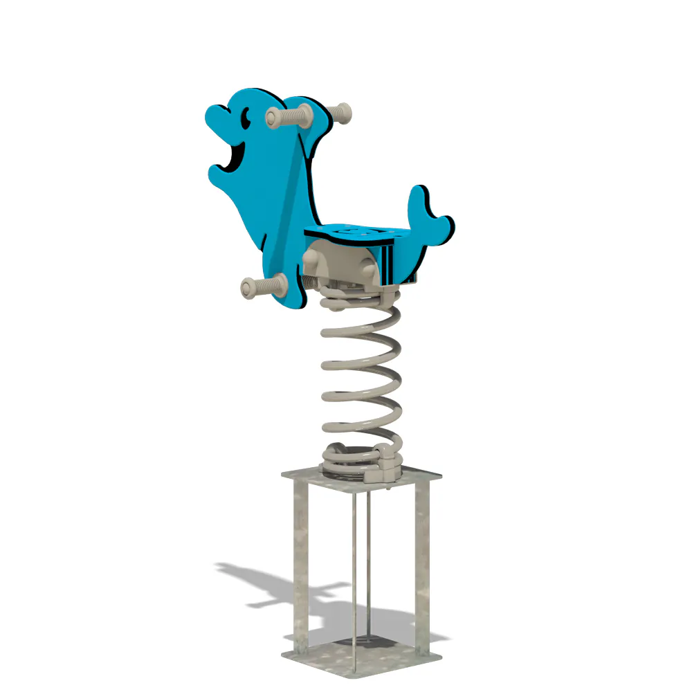 Die verstärkten Kunststoffhandgriffe und Fußstützen mit Anti-Rutsch-Profil gewährleisten, dass die kleinen Wasserabenteurer beim Spielen stets sicheren Halt finden. Die Feder aus pulverbeschichtetem Stahl ermöglicht eine sanfte und kontrollierte Wippbewegung und ist mit einer feuerverzinkten Stahlverankerung ausgestattet, die eine mühelose Montage durch Einbetonieren oder Verschrauben erlaubt. So bleibt „Delphey“ auch bei stürmischem Spielvergnügen stabil und sicher.
