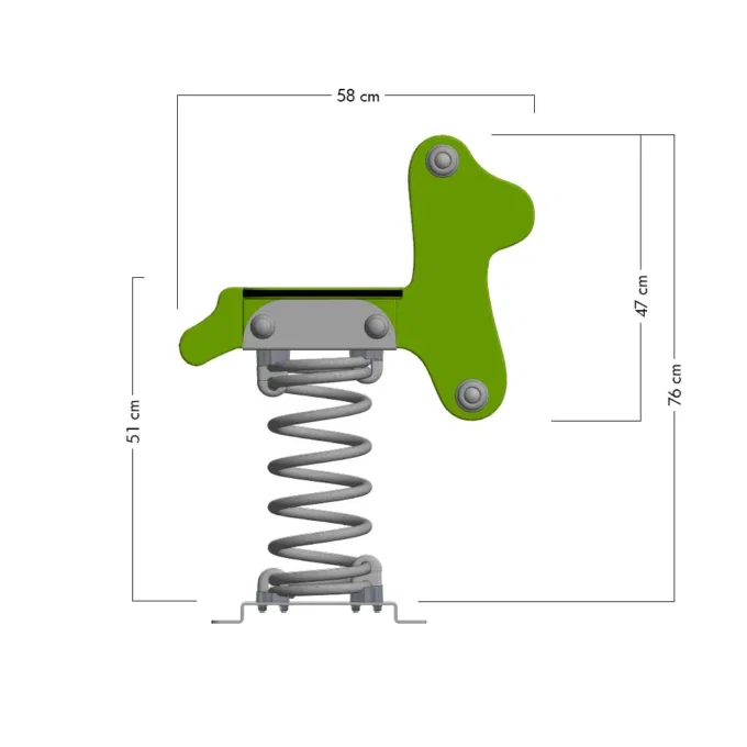 Verstärkte Kunststoffhandgriffe und Fußstützen mit Anti-Rutsch-Profil sorgen dafür, dass die kleinen Fahrer sicher sitzen und beim Spielen nicht den Halt verlieren. Die Feder aus pulverbeschichtetem Stahl garantiert sanfte und sichere Wippbewegungen und wird mit einer feuerverzinkten Stahlverankerung geliefert, die eine mühelose Montage durch Einbetonierung oder Verschraubung ermöglicht.