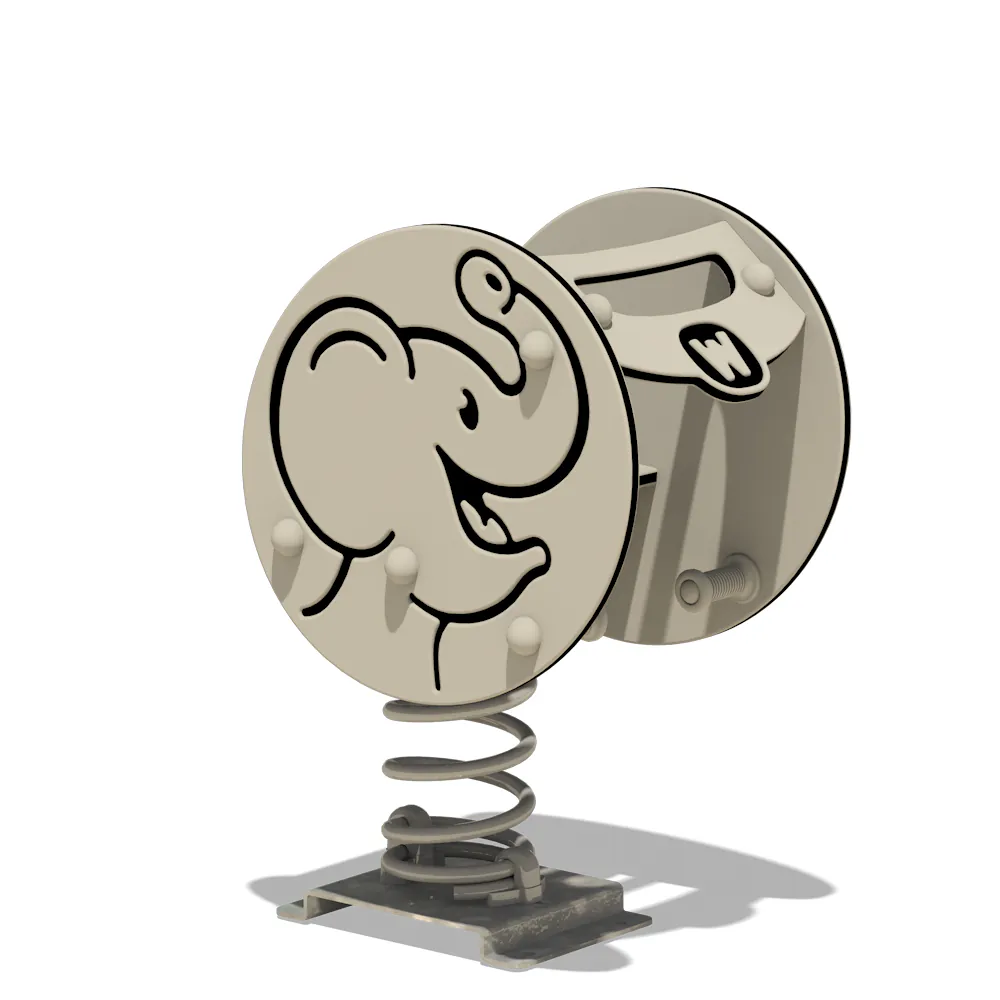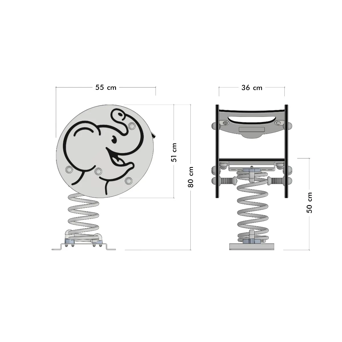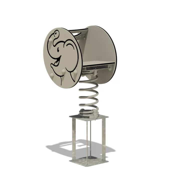 Dank der verstärkten Kunststoffhandgriffe und der Fußstützen mit Anti-Rutsch-Profil haben die Kinder beim Spielen immer den nötigen Halt. Die Feder aus pulverbeschichtetem Stahl sorgt für ein gleichmäßiges und sicheres Wippen und ist mit einer feuerverzinkten Stahlverankerung ausgestattet, die eine einfache Montage durch Einbetonieren oder Verschrauben ermöglicht. Somit bleibt „Trumpey“ auch bei ungestümen Spielen stabil und sicher.