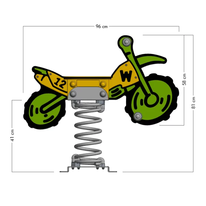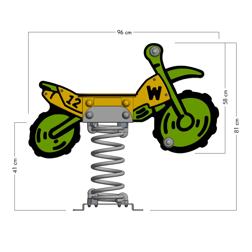 Willkommen bei der Wickey PRO Motorrad „Crossey“! Diese aufregende Federwippe bringt den Nervenkitzel des Motorradfahrens direkt auf den Spielplatz und sorgt für grenzenlosen Spaß und Bewegung für kleine Abenteurer im Alter von 3 bis 12 Jahren. Mit ihrem stylischen Grau-Rot, Grau-Gelb, Grau-Blau, Grün-Gelb oder Gelb-Rot Design wird „Crossey“ schnell zum Mittelpunkt jedes Spielplatzes und zieht die Kinder wie ein Magnet an!