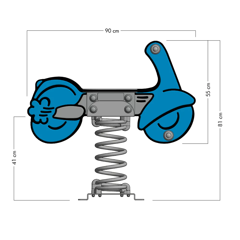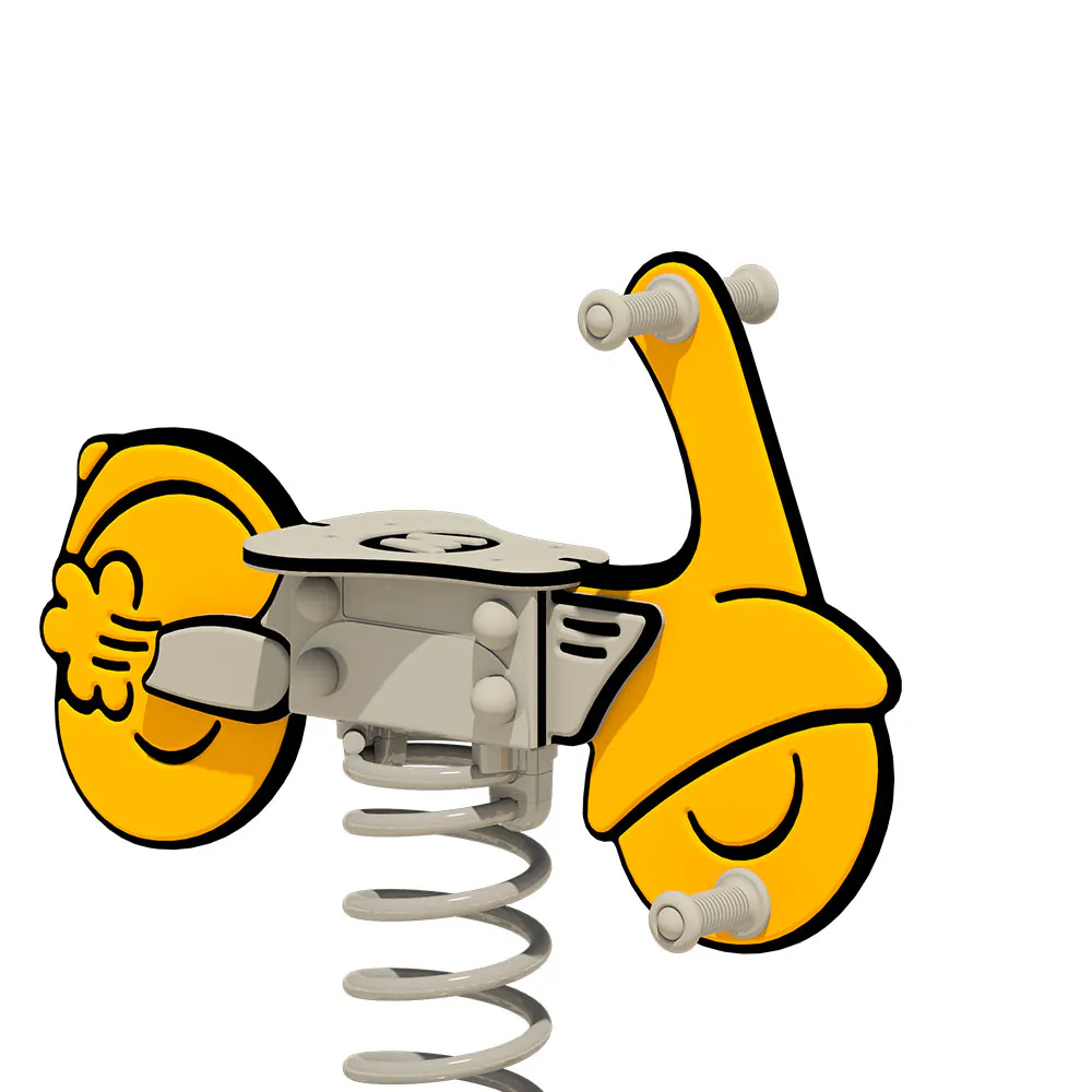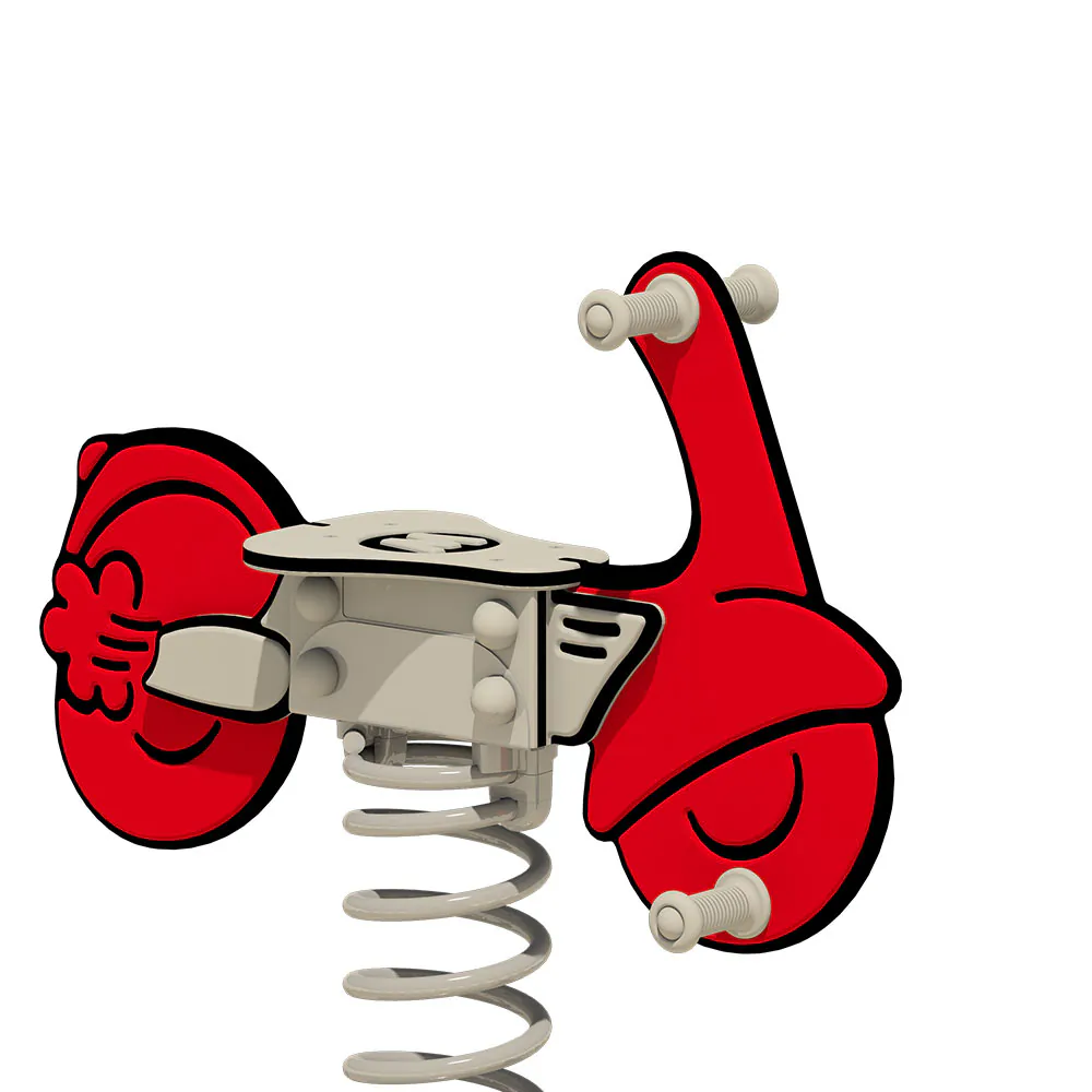 Die verstärkten Kunststoffhandgriffe und Fußstützen mit Anti-Rutsch-Profil gewährleisten, dass die kleinen Scooter-Fahrer während des Spiels stets einen stabilen Halt haben. Die Feder aus pulverbeschichtetem Stahl ermöglicht eine sanfte und kontrollierte Wippbewegung, während die feuerverzinkte Stahlverankerung eine einfache und sichere Montage durch Einbetonieren oder Verschrauben erlauben. So bleibt „Weeley“ stabil und verlässlich, egal bei welchem Abenteuer!