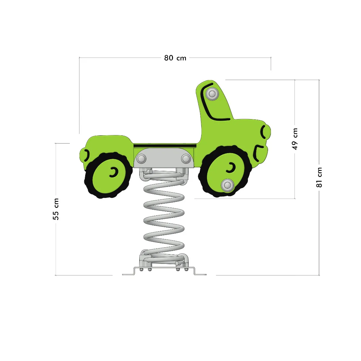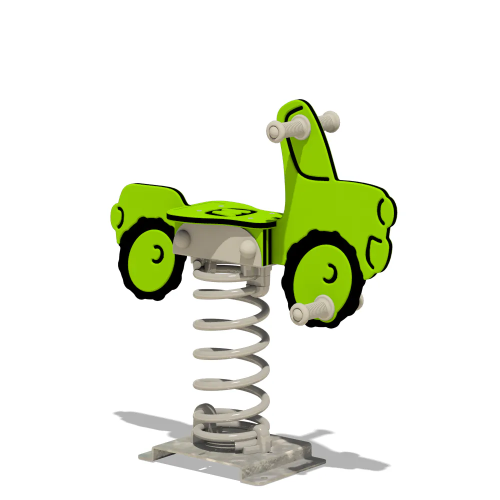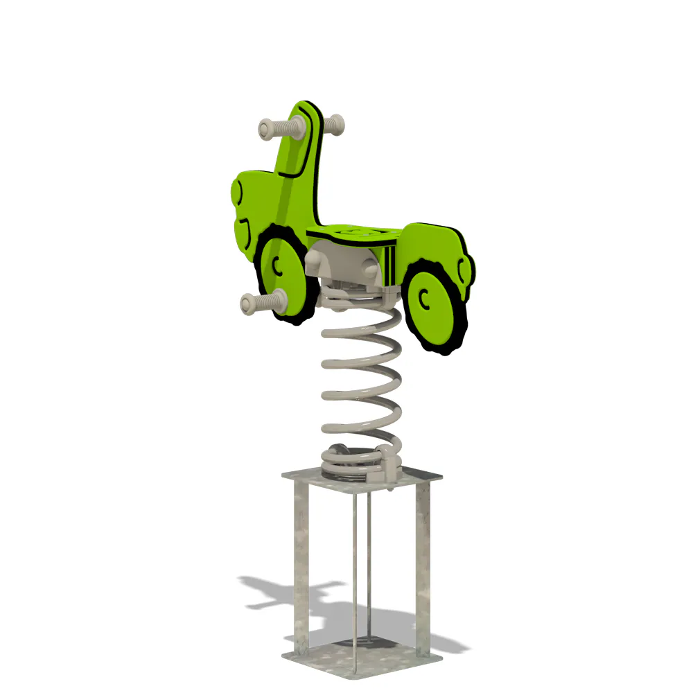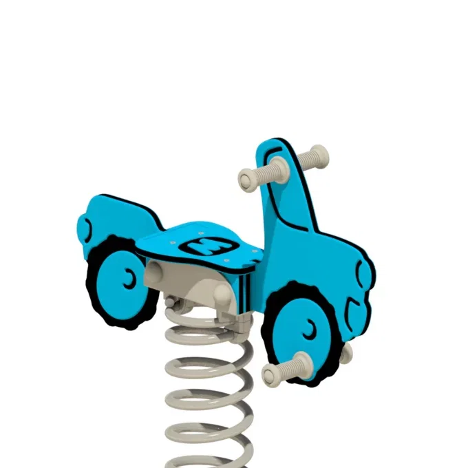 Sichere Kunststoffhandgriffe und Fußstützen mit Anti-Rutsch-Profil geben den Fahrzeugführern sicheren Halt und Verlässlichkeit während des Wippens. Die Feder aus pulverbeschichtetem Stahl sorgt für ein sanftes und kontrolliertes Wippen und ist mit einer feuerverzinkten Stahlverankerung ausgestattet. Diese ermöglicht eine unkomplizierte Montage durch Einbetonieren oder Verschrauben, damit „Movey“ stets stabil und sicher bleibt.