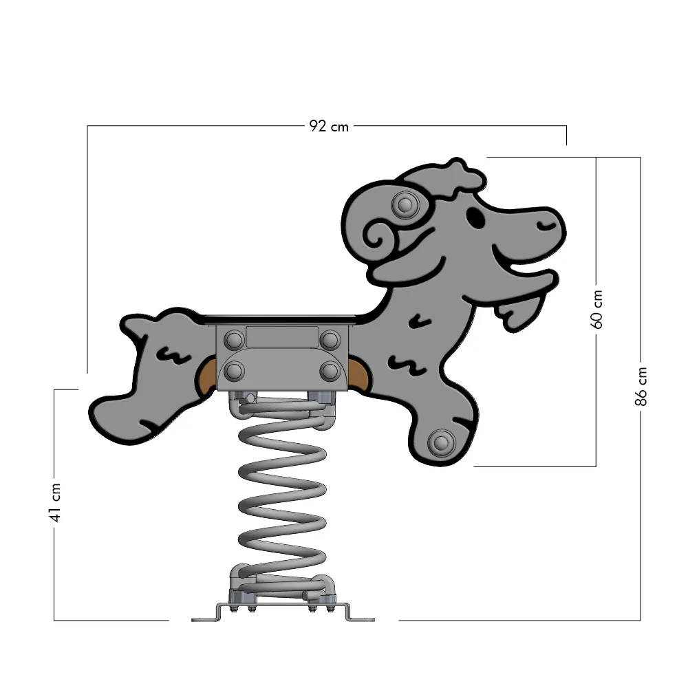 Verstärkte Kunststoffhandgriffe und Fußstützen mit Anti-Rutsch-Profil sorgen dafür, dass die kleinen Ziegen während des Spielens immer einen sicheren Halt haben. Die Feder aus pulverbeschichtetem, massivem Stahl ermöglicht ein sanftes, kontrolliertes Wippen und wird mit einer feuerverzinkten Stahlverankerung geliefert. Diese sorgt für eine einfache Montage, entweder durch Einbetonieren oder durch Verschrauben, was höchste Stabilität gewährleistet.