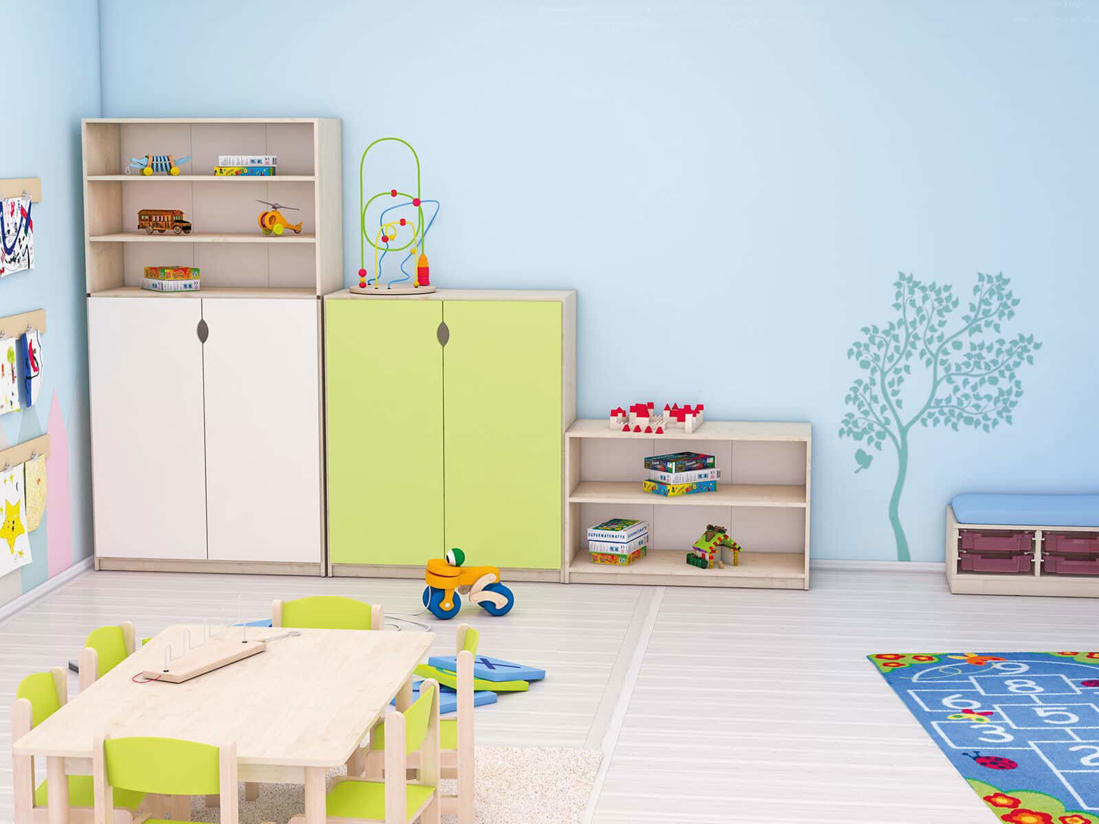Feria Hochschrank mit Regalen für Kitas, Krippen und Kindergarten