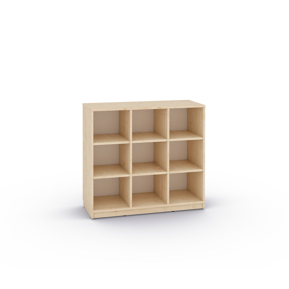 Die großzügige Tiefe dieses Möbels haben wir gezielt für die speziellen Anforderungen im pädagogischen Bereich konzipiert. Jedes Fach hat eine Höhe von 27 Zentimetern. Dadurch passen Materialien im klassischen DIN-A4-Format, wie etwa breite Aktenordner, Arbeitshefte, Zeichenblöcke oder großformatige Bilderbücher, mühelos hinein. Nichts steht störend über den Rand hinaus, was dauerhaft für ein ruhiges und aufgeräumtes Raumbild sorgt.