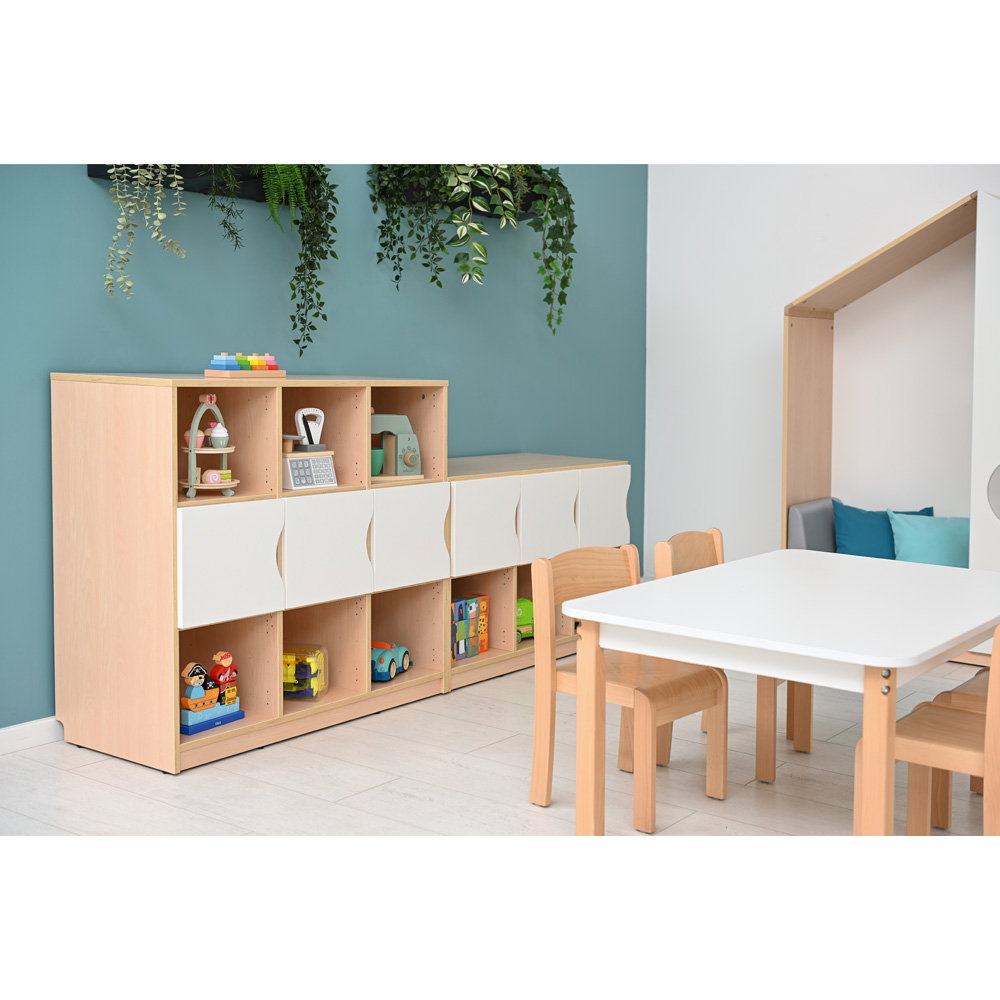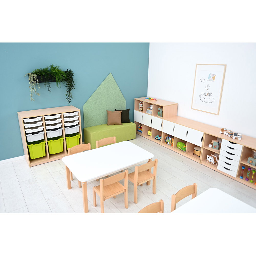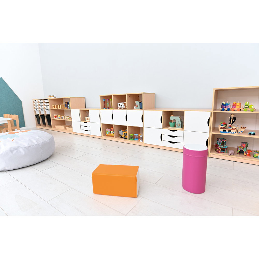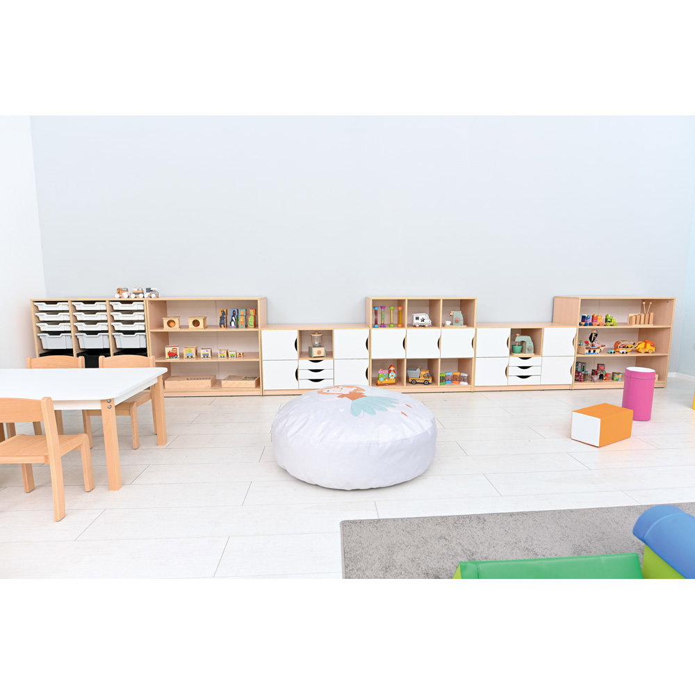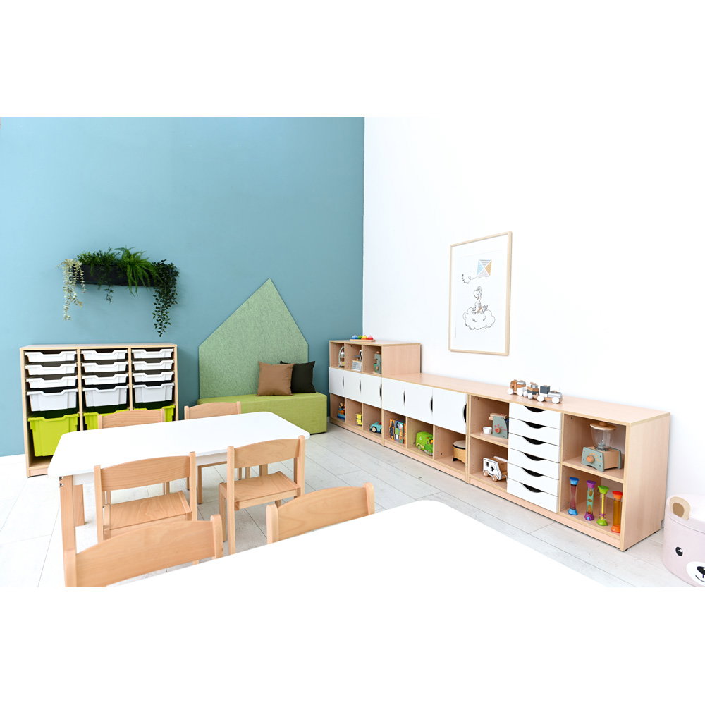 Dieses Möbelstück vereint eine platzsparende Bauweise mit einem erstaunlichen Fassungsvermögen. Es fügt sich dezent in bestehende Raumkonzepte ein und schafft sofort eine klare, greifbare Struktur. Durch sein intelligentes, modulares Konzept passt sich das Regal exakt Ihren aktuellen und zukünftigen Bedürfnissen an. Ob als offenes Aufbewahrungssystem für die gemütliche Leseecke oder als geschlossener Eigentumsschrank für die Kinder – das Feria Regal M bringt dauerhaft Ordnung in jeden Gruppenraum und erleichtert Erziehern und Lehrkräften die tägliche Organisation spürbar.