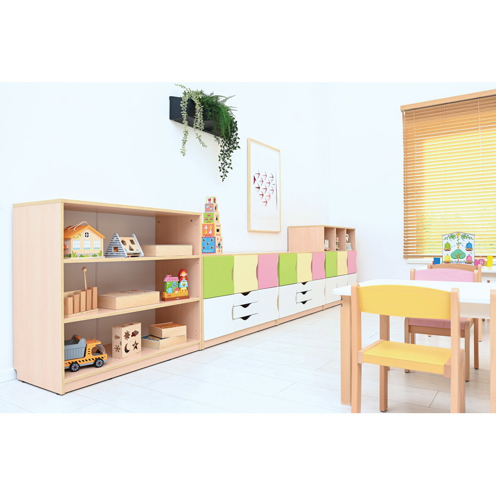 Bringen Sie dauerhaft Struktur und Übersicht in Ihre Gruppenräume. Das Feria Regal M vereint eine offene, kindgerechte Funktionalität mit einem ansprechenden Design und extrem hoher Stabilität. Ergänzen Sie Ihre Einrichtung noch heute und erleichtern Sie sich und den Kindern die tägliche Raumorganisation.