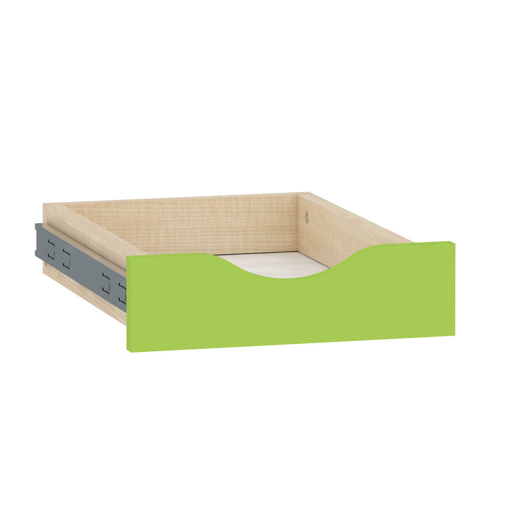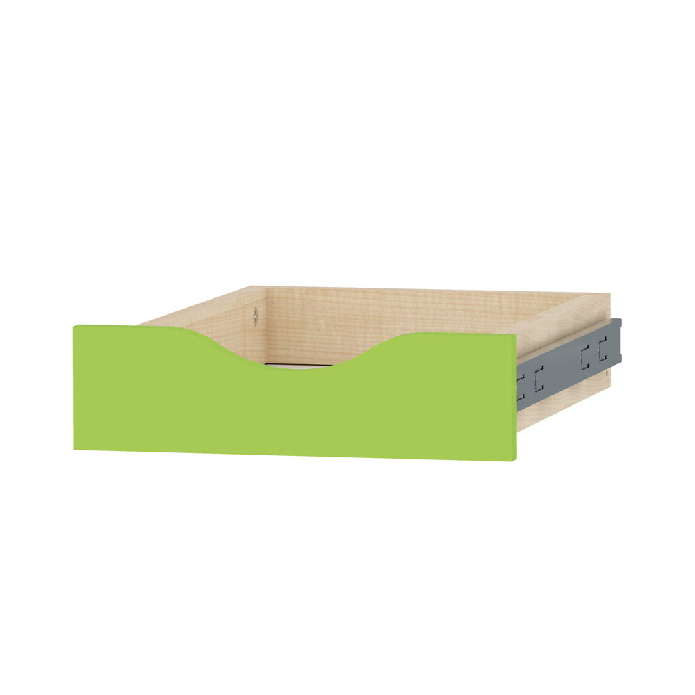 Möbel in Bildungseinrichtungen müssen enormen täglichen Belastungen standhalten. Sowohl die Front als auch der Korpus dieser Schublade werden aus einer 18 Millimeter starken, laminierten Spanplatte gefertigt. Diese Konstruktion garantiert eine extrem hohe Stabilität, Kratzfestigkeit und eine sehr leichte Reinigung. - Sanfte Farbgebung für ein harmonisches Raumbild