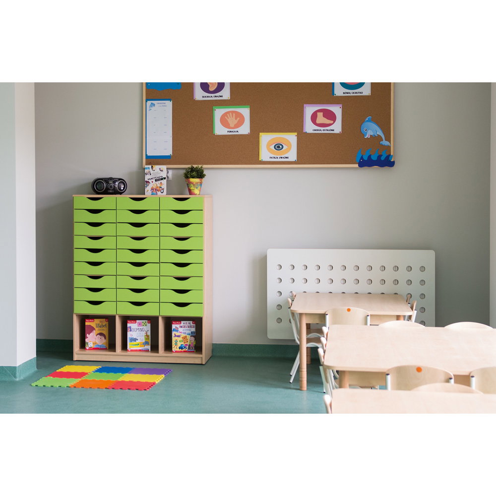 Organisieren Sie den pädagogischen Alltag mit Leichtigkeit und System. Die laminierte Feria Schublade in flacher Ausführung vereint Sicherheit, ansprechendes Design und funktionale Aufbewahrung auf höchstem Niveau.