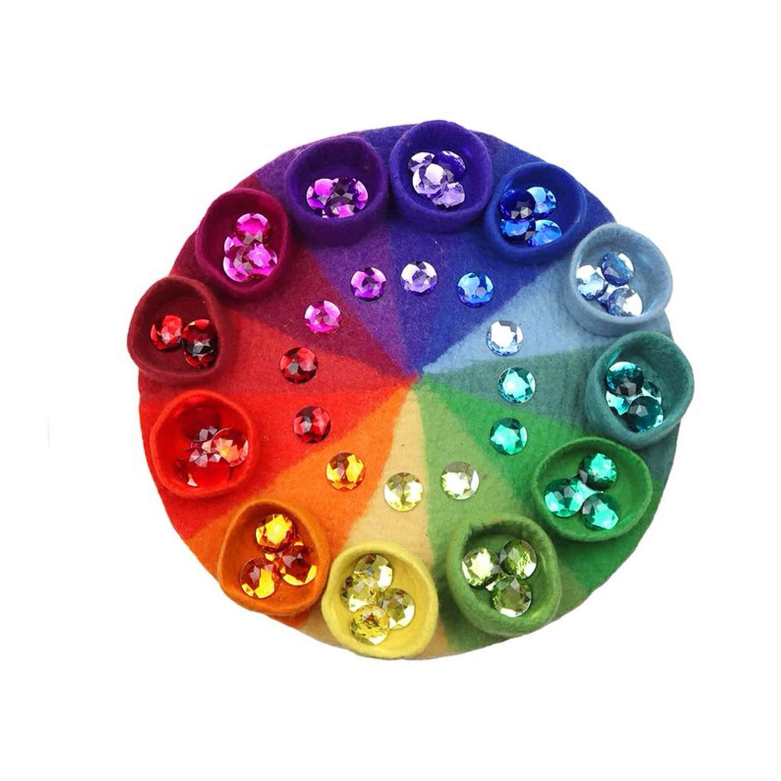 Jedes Filzschälchen hat einen Durchmesser von 10 cm und eine Höhe von 5,5 cm. Diese ideale Größe macht es kleinen Händen leicht, die Töpfe zu greifen und zu verwenden. Die leuchtenden Farben – perfekt auf den Farbkreis abgestimmt – fördern die visuelle Wahrnehmung und laden Kinder ein, ihrer Kreativität freien Lauf zu lassen.