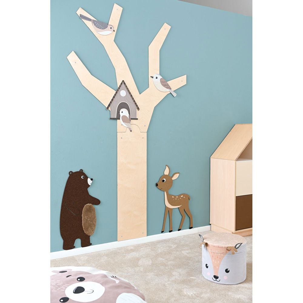 In lebhaften Umgebungen, in denen gespielt und gelernt wird, ist eine angenehme Akustik von unschätzbarem Wert. Genau hier spielt die Wandapplikation ihre besondere Stärke aus. Die großflächigen, dicken Filzelemente wirken auf natürliche Weise schallabsorbierend. Sie helfen dabei, den Nachhall im Raum zu dämpfen und die Geräuschkulisse spürbar zu reduzieren. So trägt der Bär ganz unbemerkt zu einer ruhigeren, entspannteren Umgebung bei, die die Konzentration fördert und das allgemeine Wohlbefinden steigert.