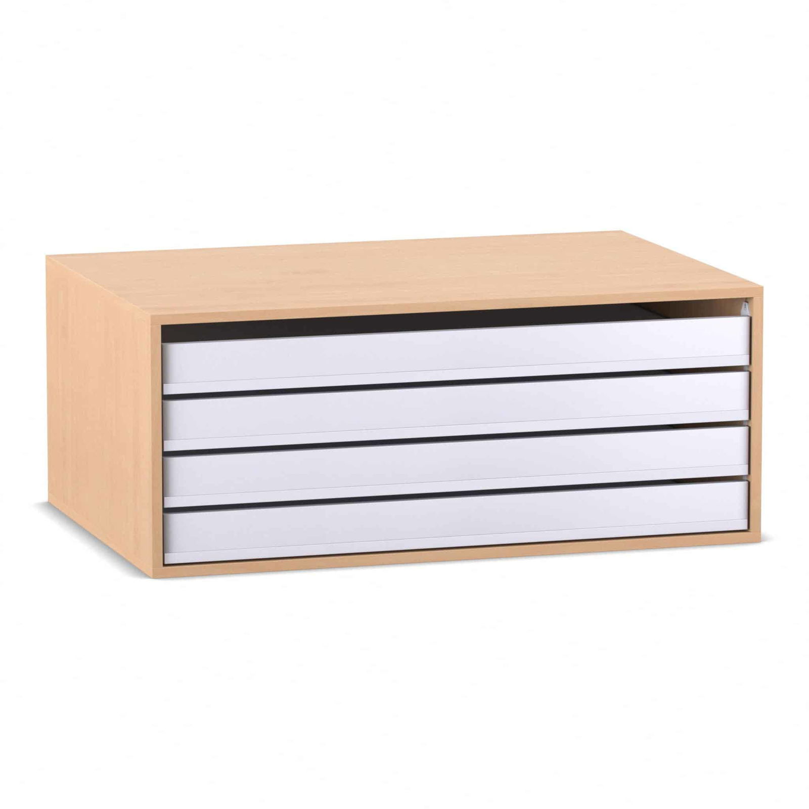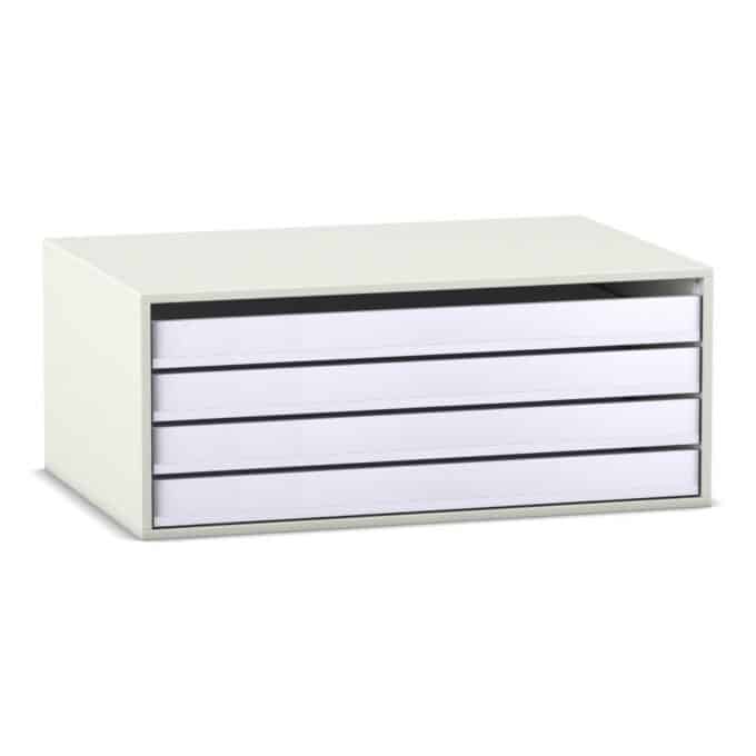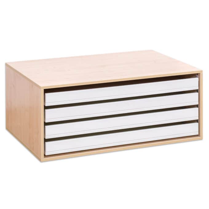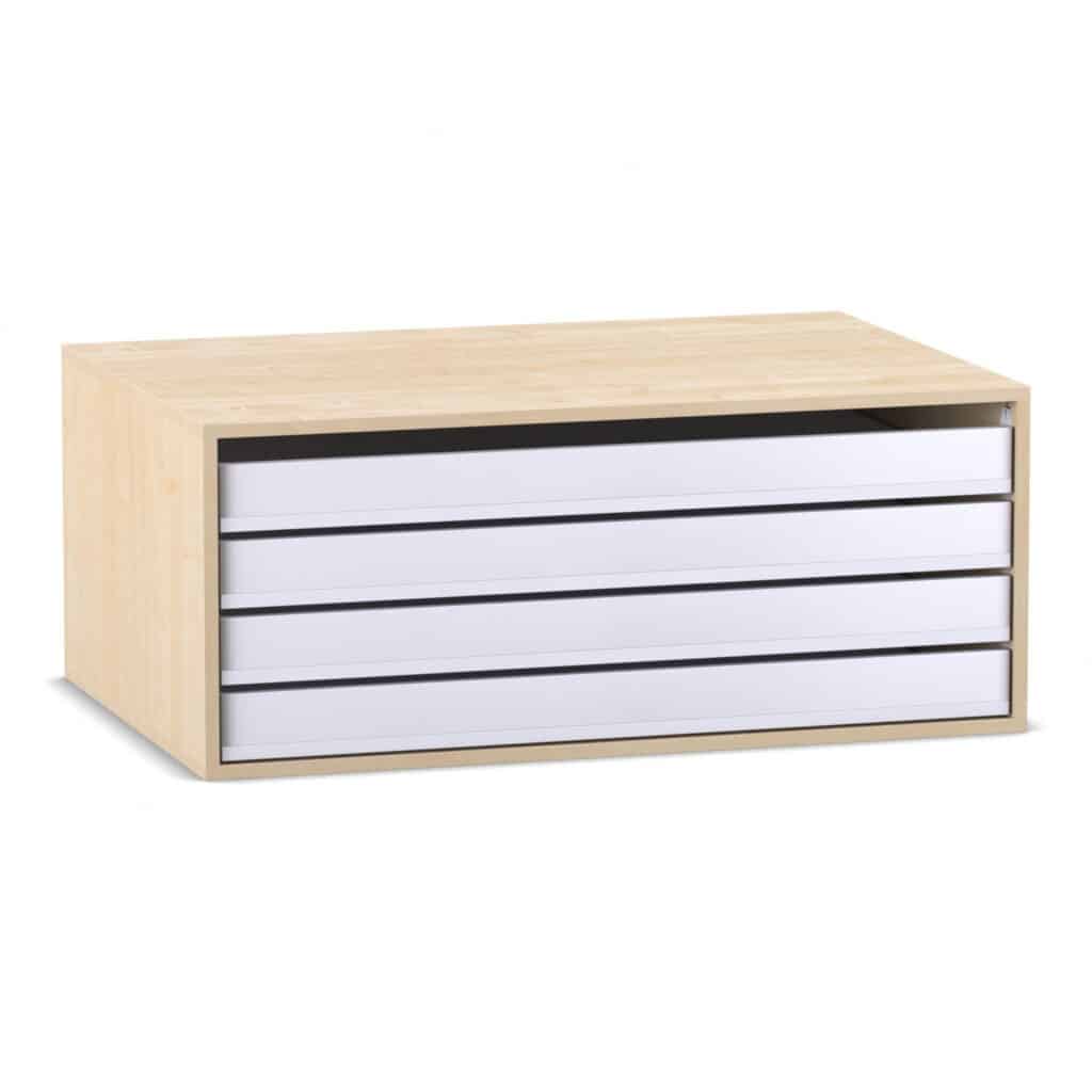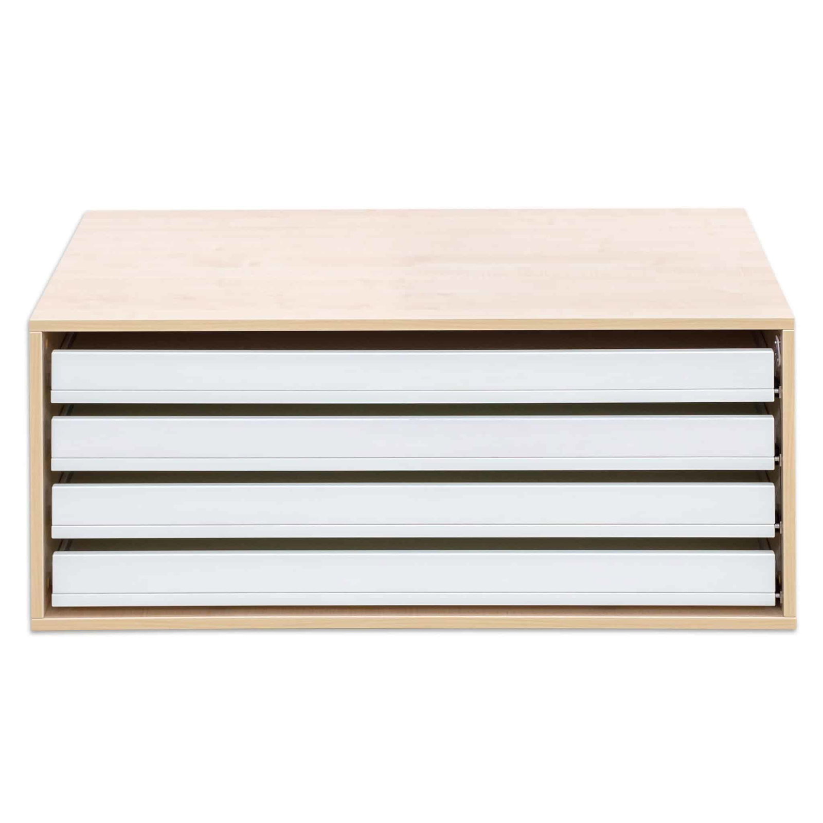 - Komfortabler und schneller Zugriff: Jede der vier Schubladen verfügt über ein praktisches Griffloch an der Vorderseite. Dies ermöglicht ein einfaches und schnelles Herausziehen der Auszüge. Das Entnehmen selbst einzelner Blätter oder großer Papierbögen wird so zum Kinderspiel, ohne dass der gesamte Stapel durchsucht werden muss.