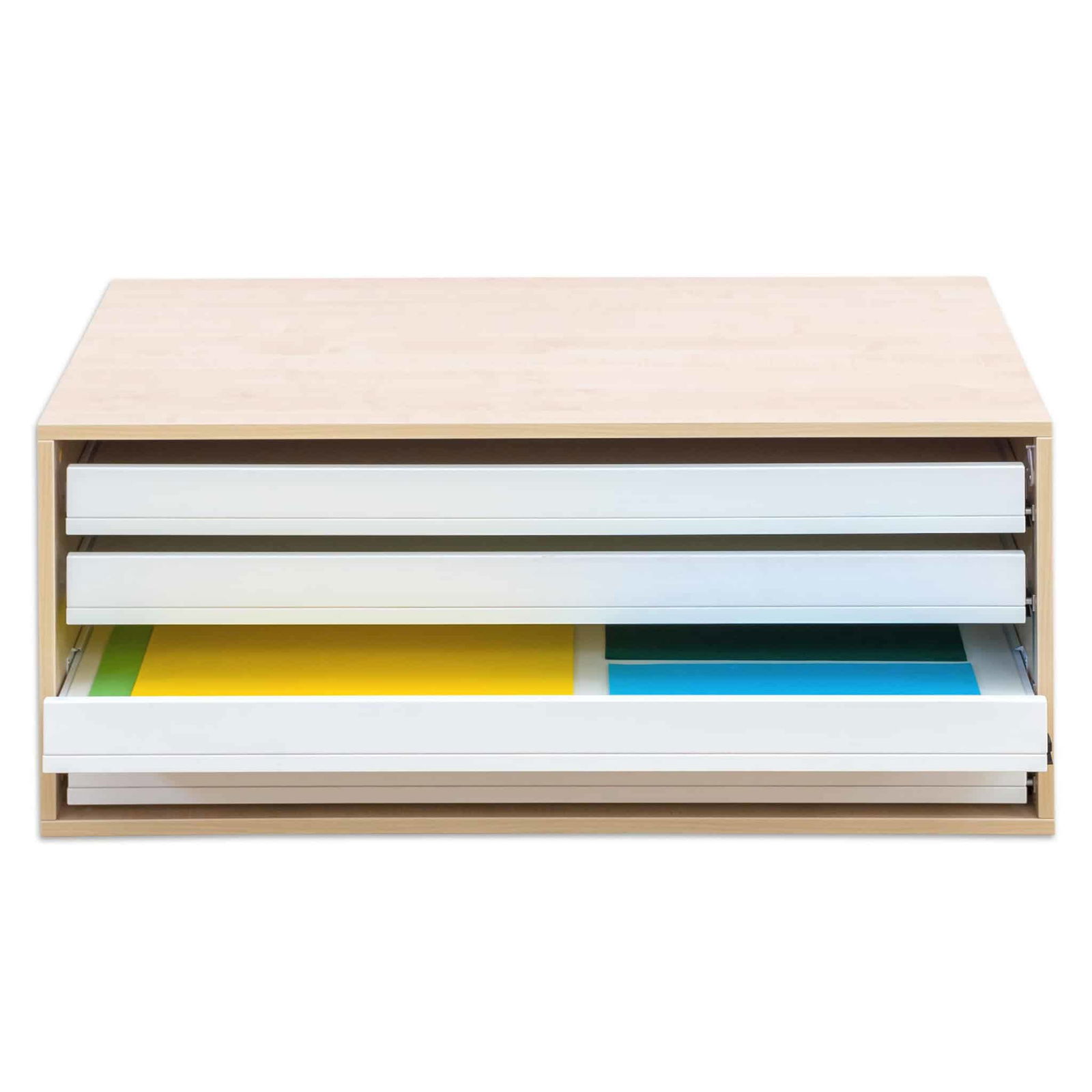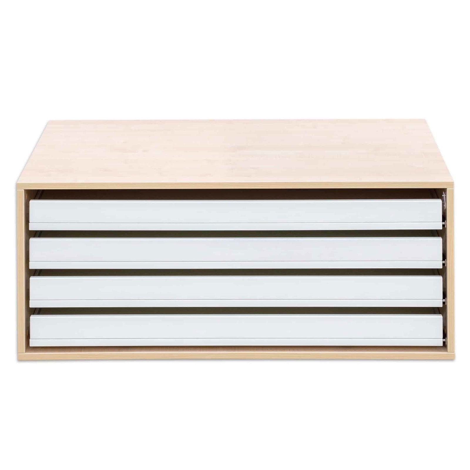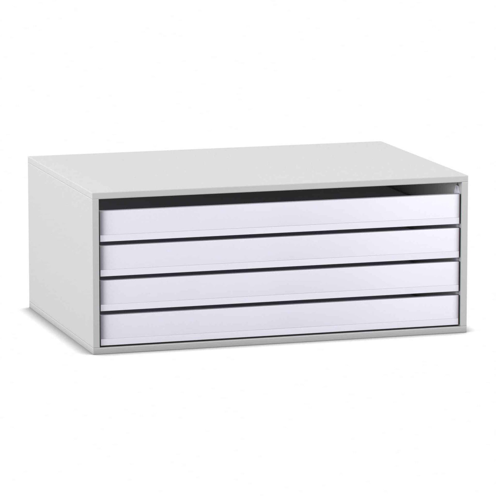 - Komfortabler und schneller Zugriff: Jede der vier Schubladen verfügt über ein praktisches Griffloch an der Vorderseite. Dies ermöglicht ein einfaches und schnelles Herausziehen der Auszüge. Das Entnehmen selbst einzelner Blätter oder großer Papierbögen wird so zum Kinderspiel, ohne dass der gesamte Stapel durchsucht werden muss.