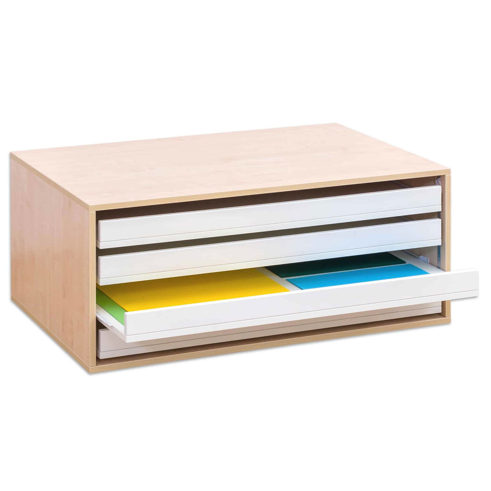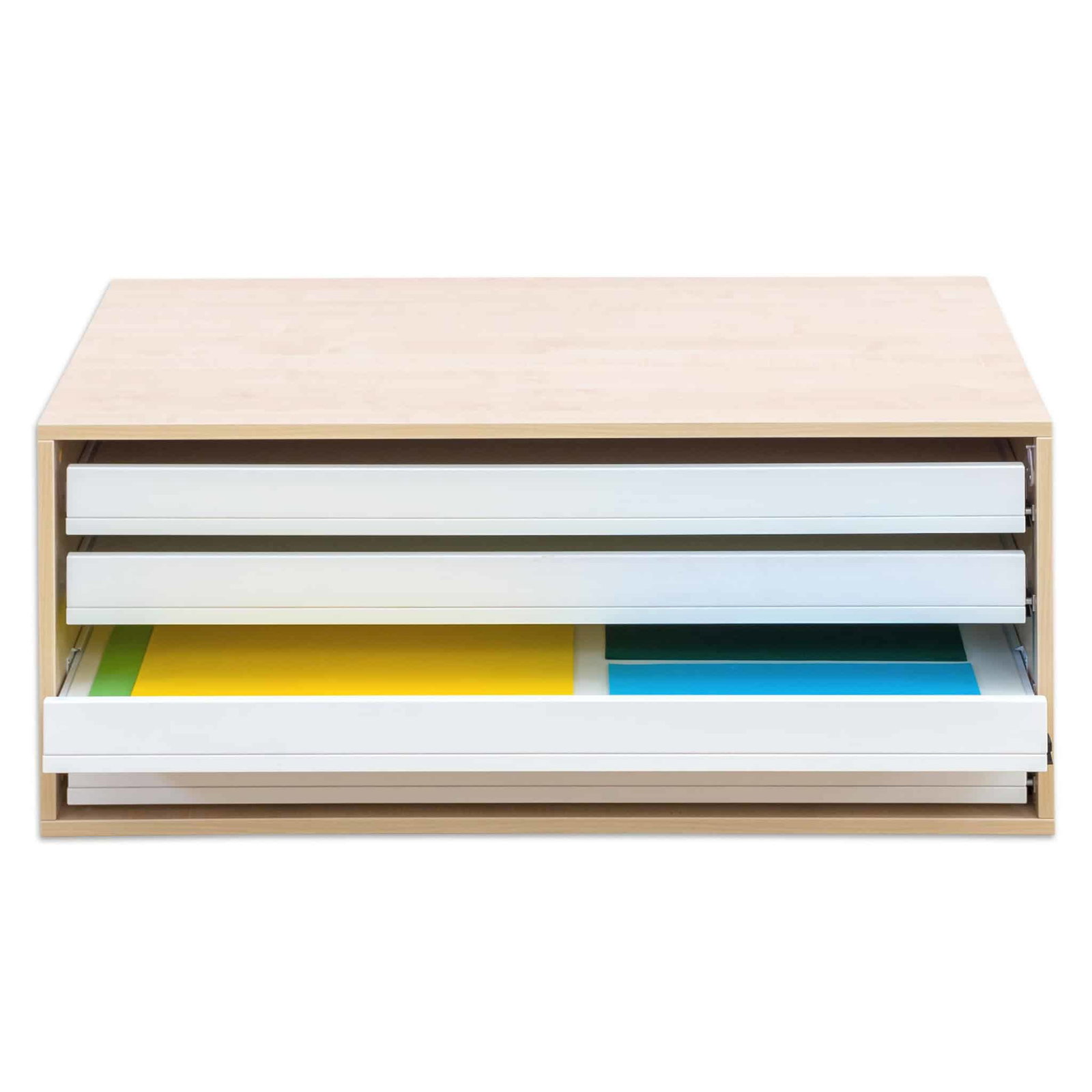 - Enormer Platzgewinn in der Höhe: Verdoppeln Sie nahezu Ihren Stauraum, indem Sie die Raumhöhe optimal ausnutzen. Die vier großformatigen Auszüge bieten reichlich Platz für Papierbögen, Karton, Poster, fertige Zeichnungen oder Drucke bis zum Format DIN A1. So bleibt alles glatt, knitterfrei und übersichtlich sortiert.