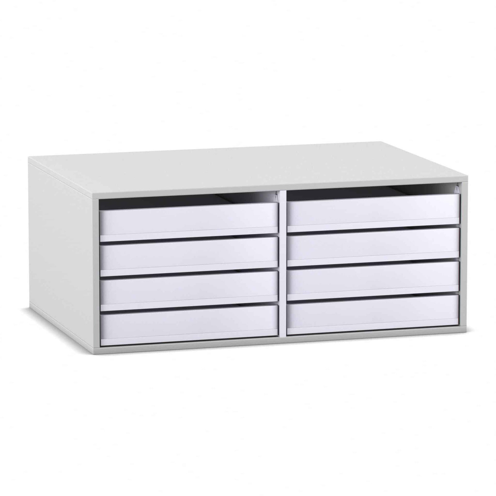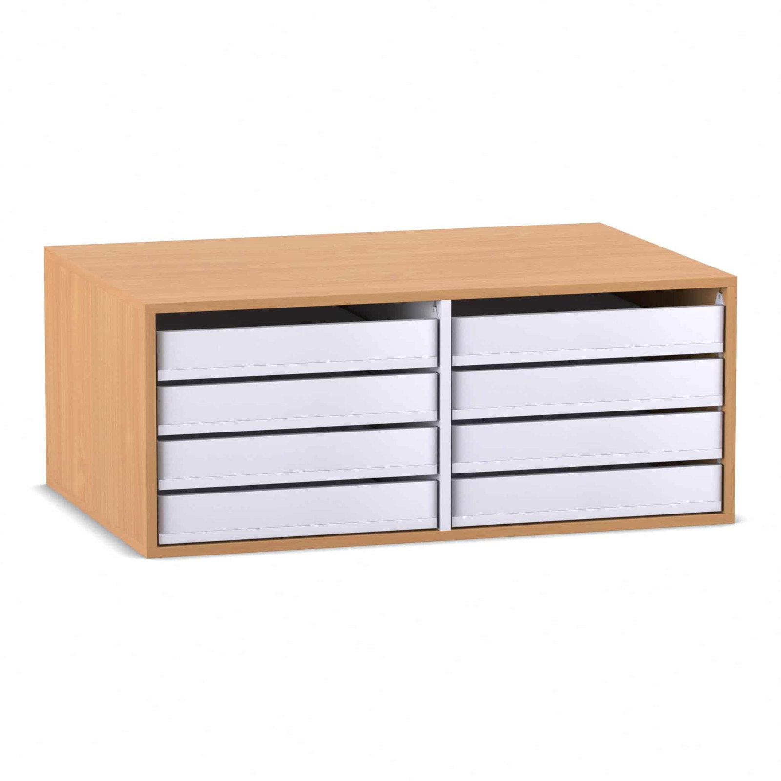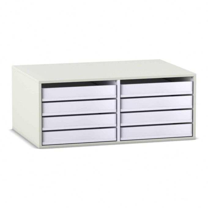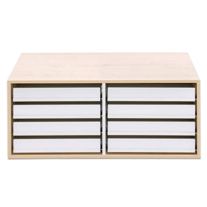 - 8 geräumige Auszüge: Die Schubladen bieten ausreichend Platz, um Papier unterschiedlicher Formate oder andere Materialien bequem zu verstauen.
