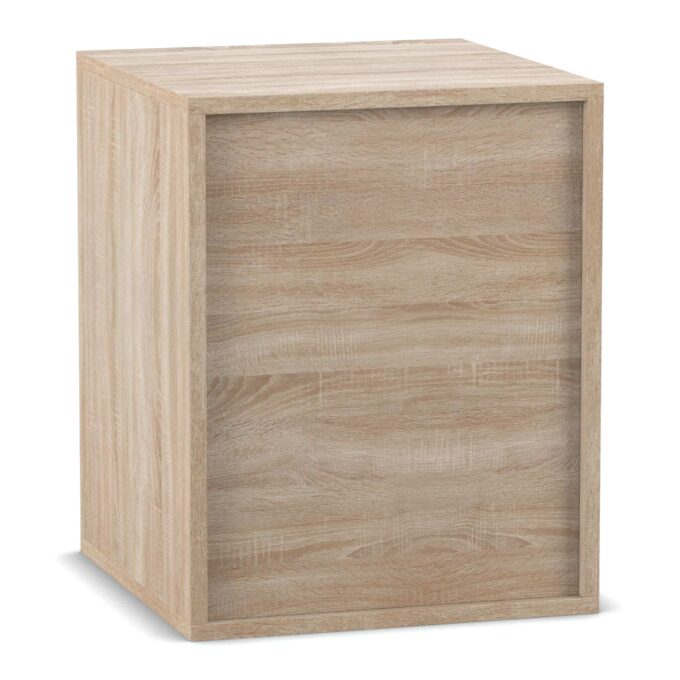 - Melaminharzbeschichtung: Die widerstandsfähige Oberfläche schützt das Regal vor Abnutzung, Feuchtigkeit und Kratzern, was es ideal für den täglichen Einsatz macht.