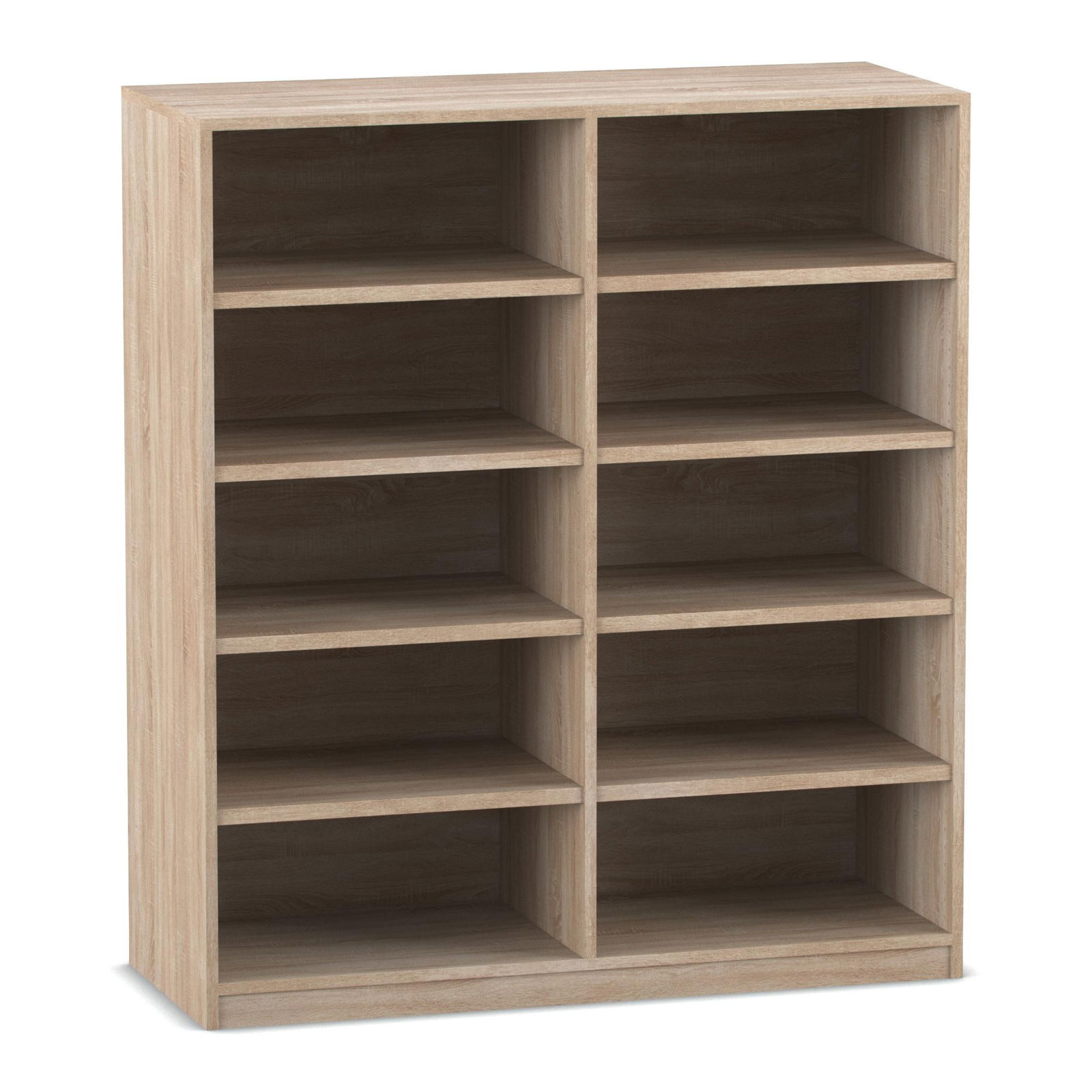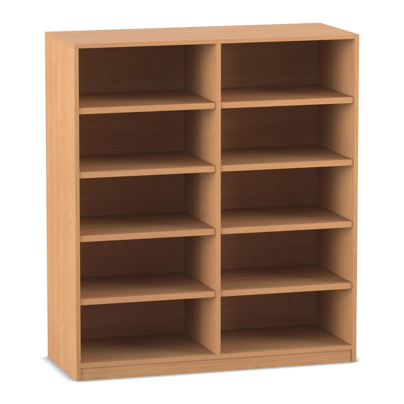 Mit einer Breite von über 126 cm und zehn geräumigen Fächern bietet dieses Regal eine beeindruckende Lagerkapazität. Die acht höhenverstellbaren Fachböden ermöglichen es Ihnen, die Fächer individuell an verschiedene Buchformate anzupassen – von großen Bildbänden bis hin zu Reihen von Aktenordnern. - Ansprechendes Design für einladende Räume