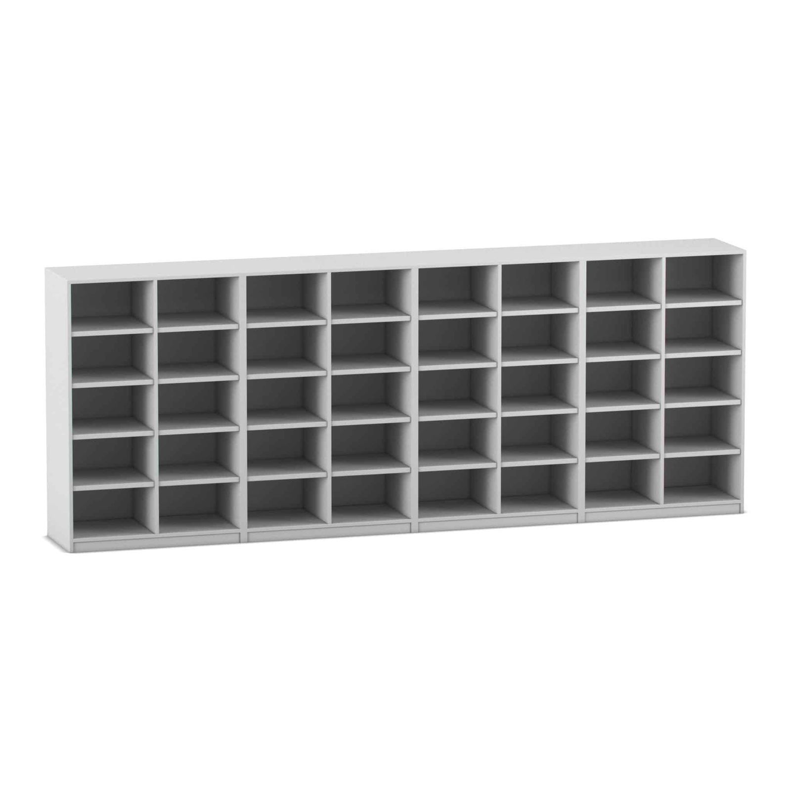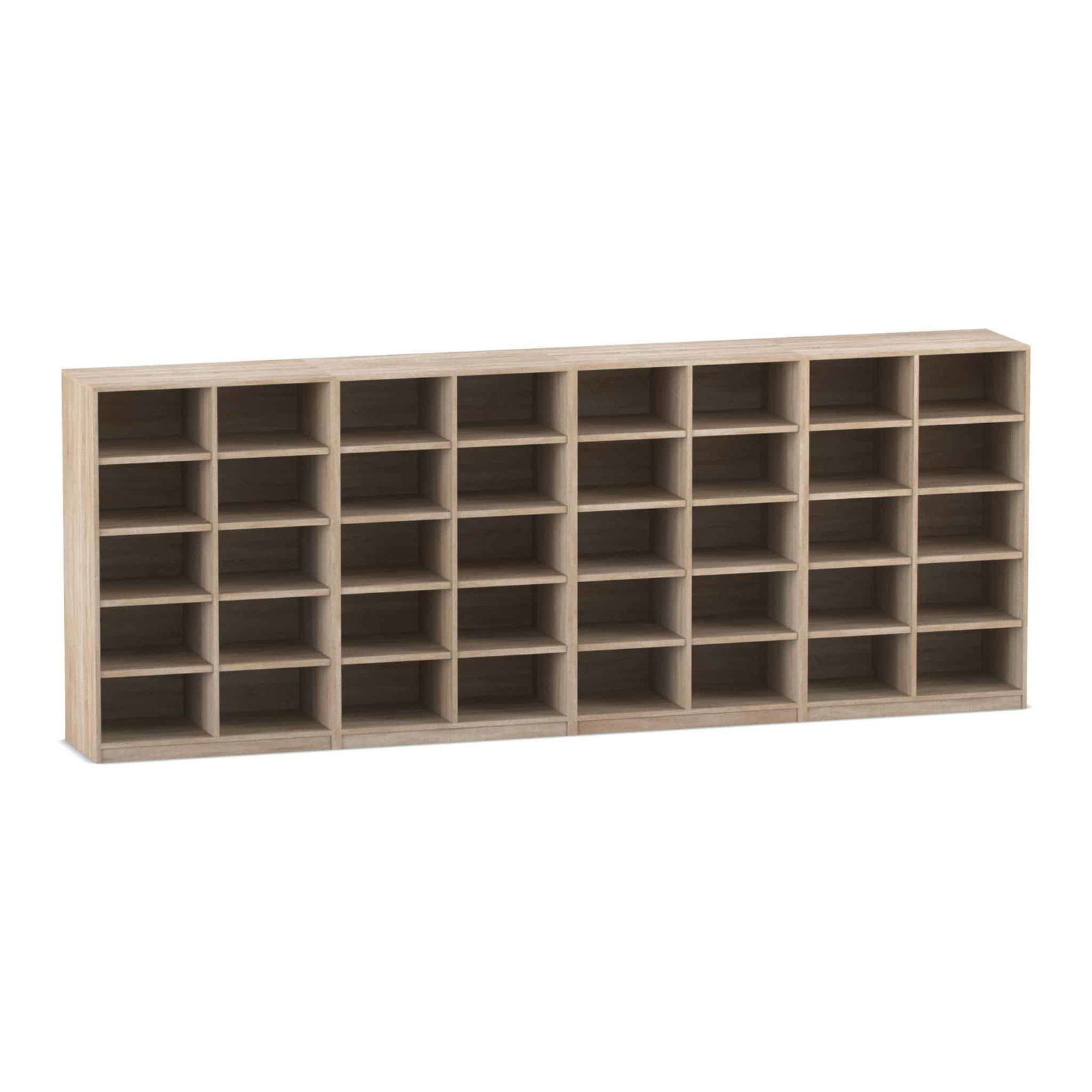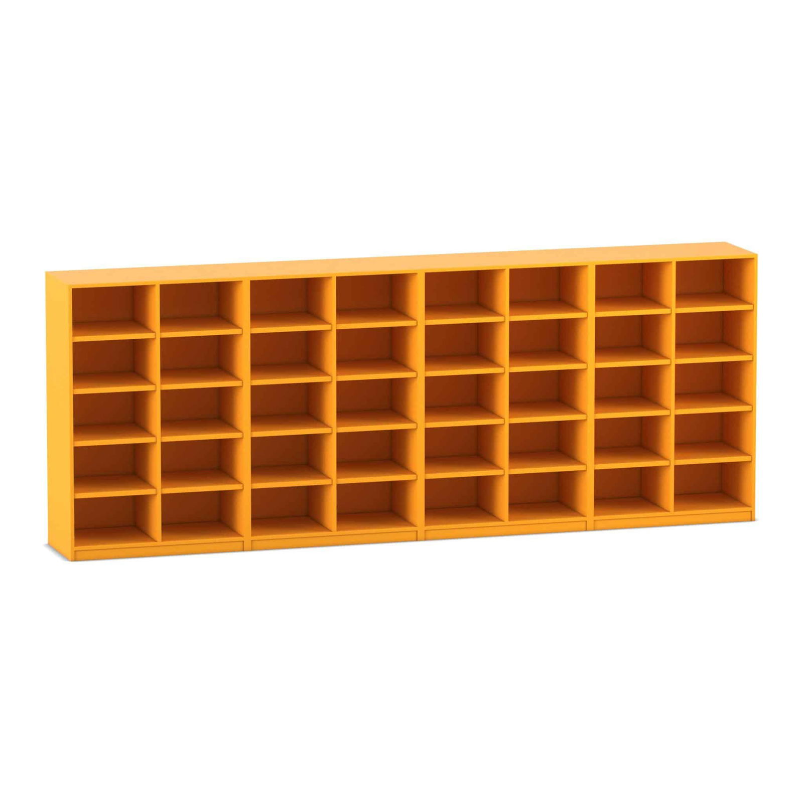 - Endloser Stauraum auf fast vier Metern: Mit insgesamt 40 geräumigen Fächern, verteilt auf eine Gesamtbreite von 377,6 cm, bietet dieses Regalsystem immensen Platz für eine umfangreiche Sammlung an Büchern und Medien. Die mittlere Höhe von ca. 144 cm ist ideal, da sie viel Stauraum bietet, die oberen Fächer aber auch für jüngere Schülerinnen und Schüler gut erreichbar bleiben.