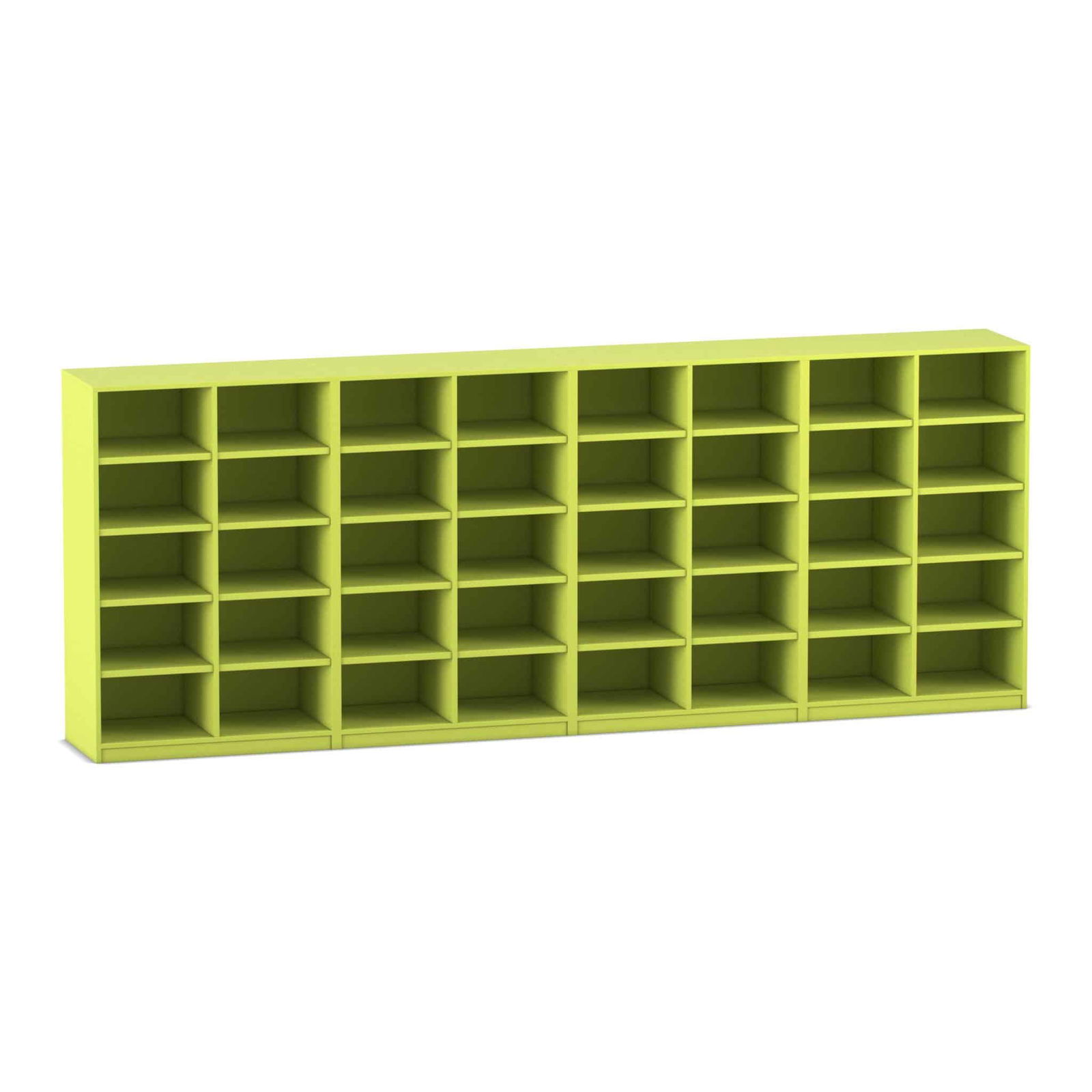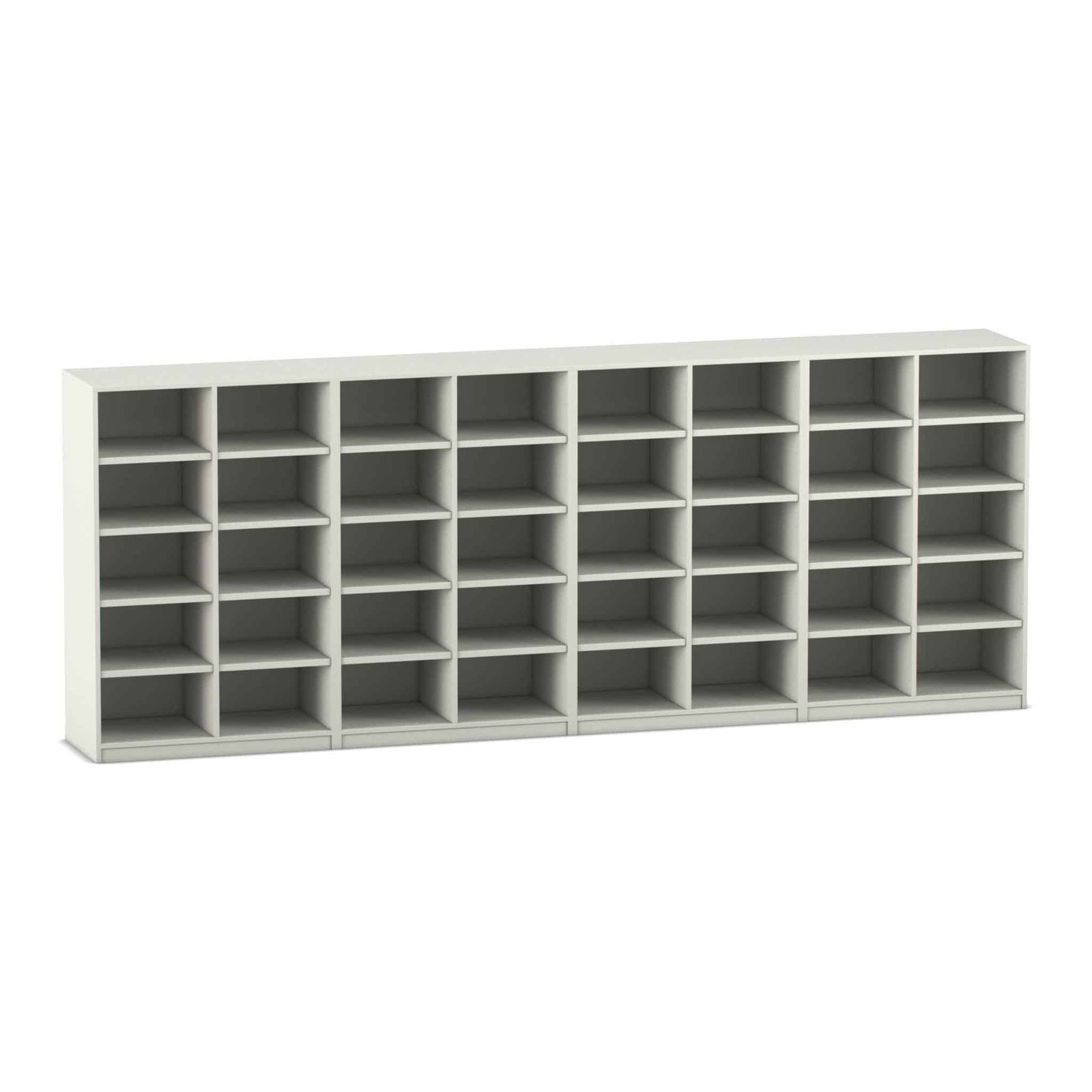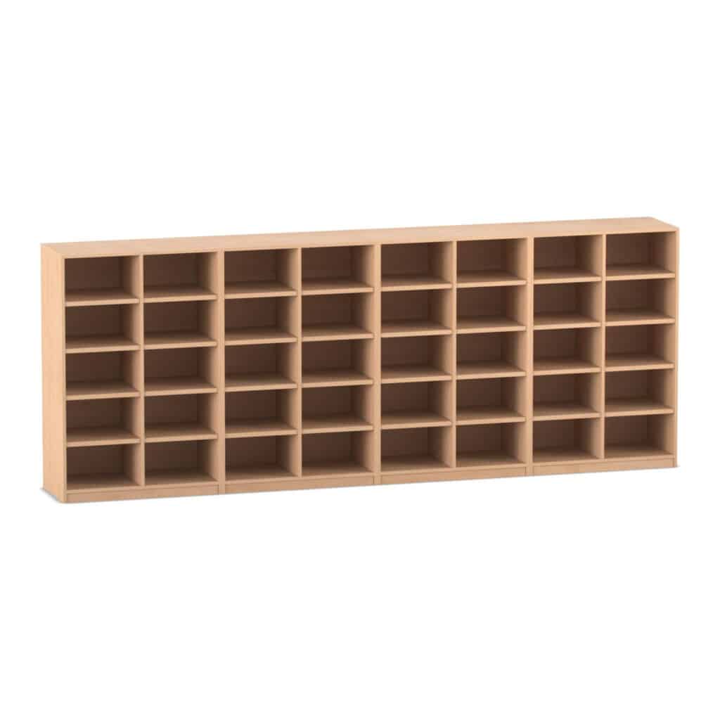 - Endloser Stauraum auf fast vier Metern: Mit insgesamt 40 geräumigen Fächern, verteilt auf eine Gesamtbreite von 377,6 cm, bietet dieses Regalsystem immensen Platz für eine umfangreiche Sammlung an Büchern und Medien. Die mittlere Höhe von ca. 144 cm ist ideal, da sie viel Stauraum bietet, die oberen Fächer aber auch für jüngere Schülerinnen und Schüler gut erreichbar bleiben.